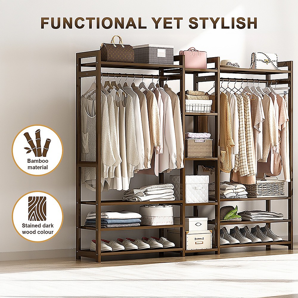 Portable Clothes Rack Coat Garment Stand Bamboo Rail Hanger Airer Closet