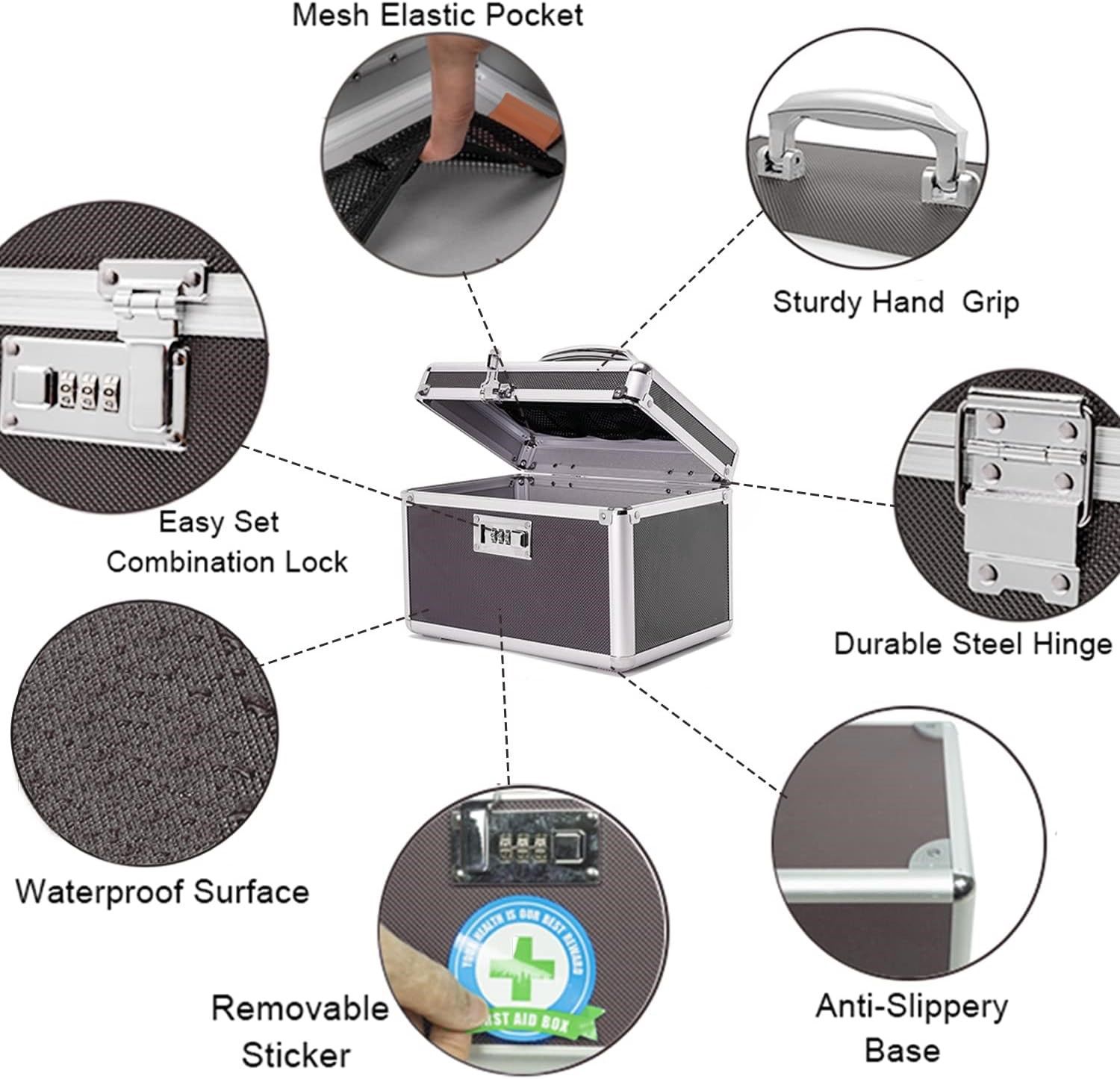 - Features a lockable design to keep medications and first aid accessories secure and private.
