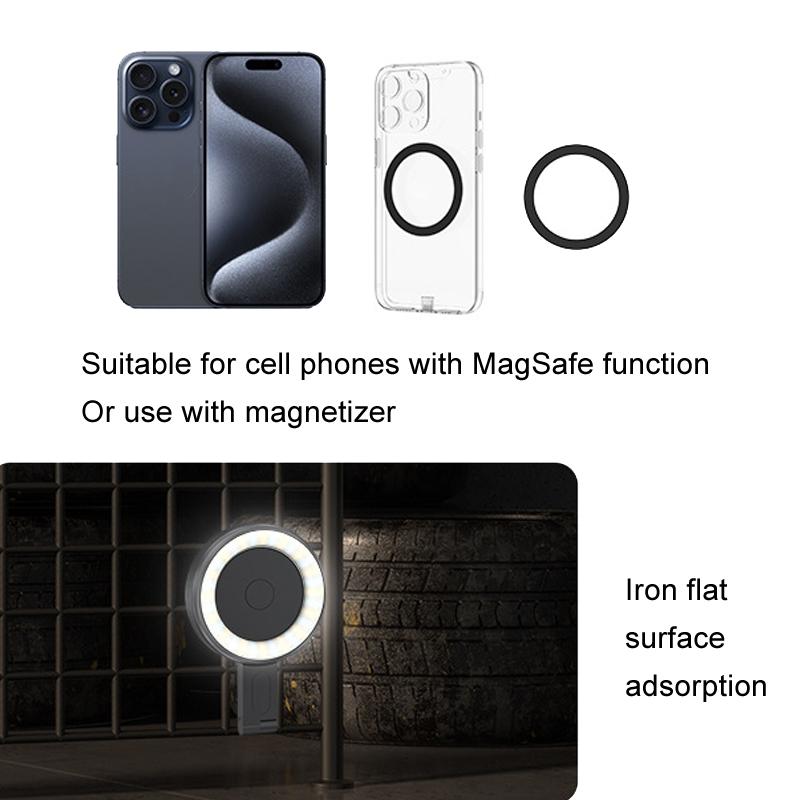 This portable magnetic fill light is designed for easy use with cell phones, offering adjustable lighting angles and multiple lighting modes to suit various scenarios. Its foldable and lightweight design makes it convenient for on-the-go use, providing soft, natural, and accurate lighting for photography or video recording.