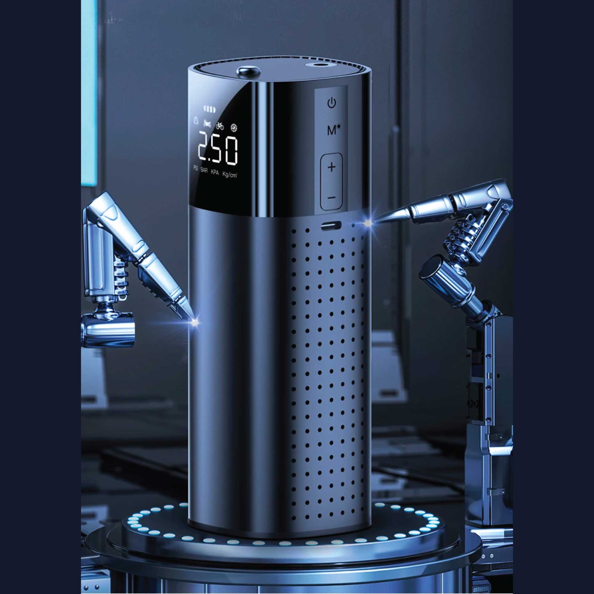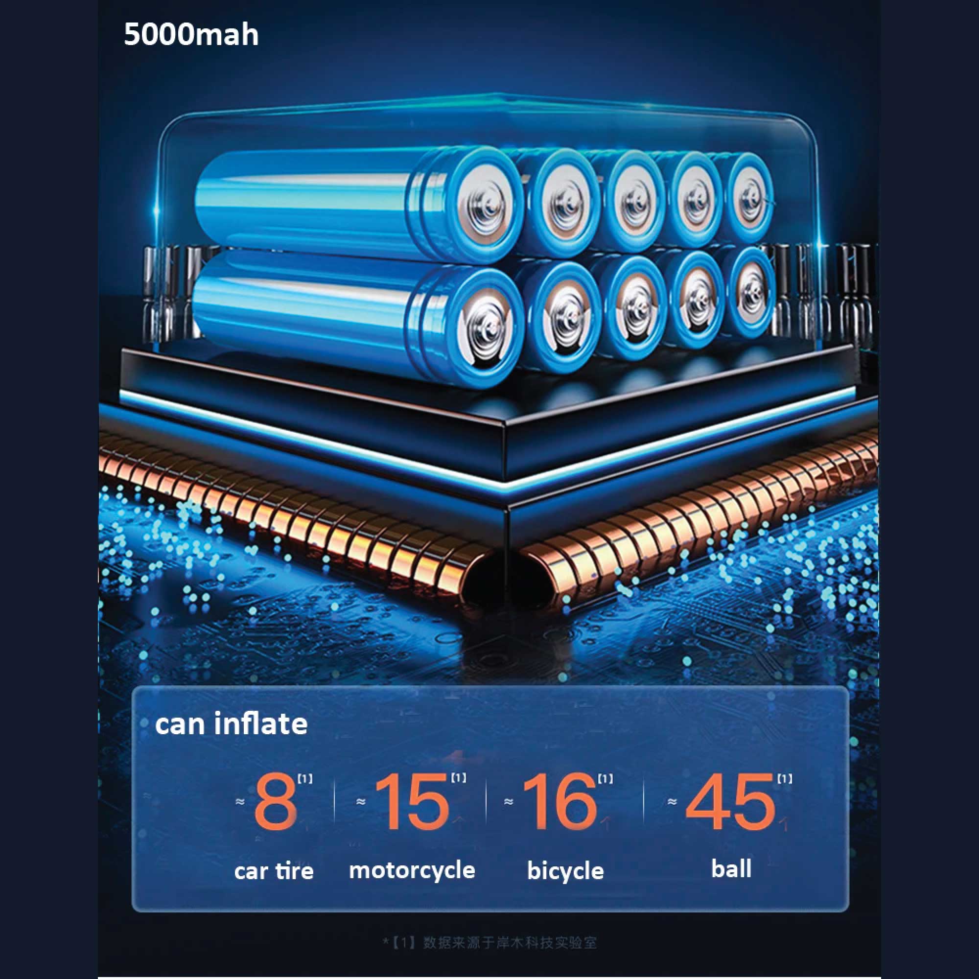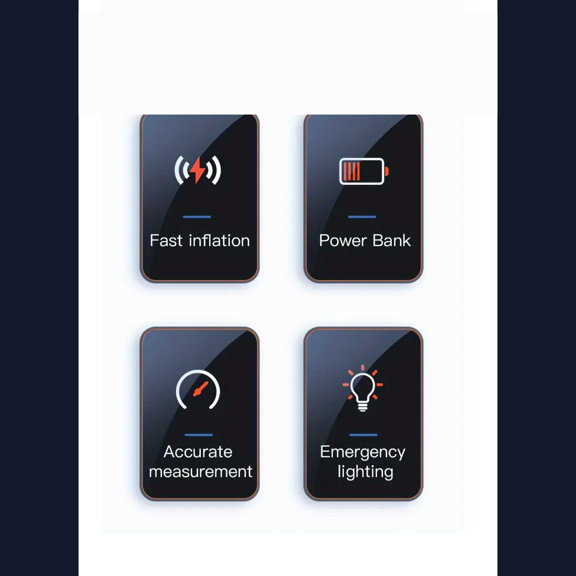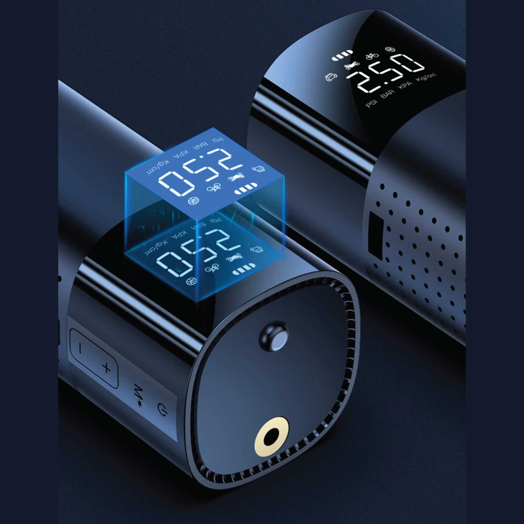 - Powered by a high-capacity battery capable of inflating multiple tires on a single charge