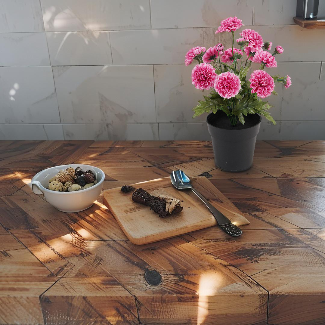 This artificial pink ‘Mum’ chrysanthemum is a realistic decorative plant designed to enhance the aesthetic of any room. Its lifelike foliage and vibrant color make it a charming addition to your home or office space.