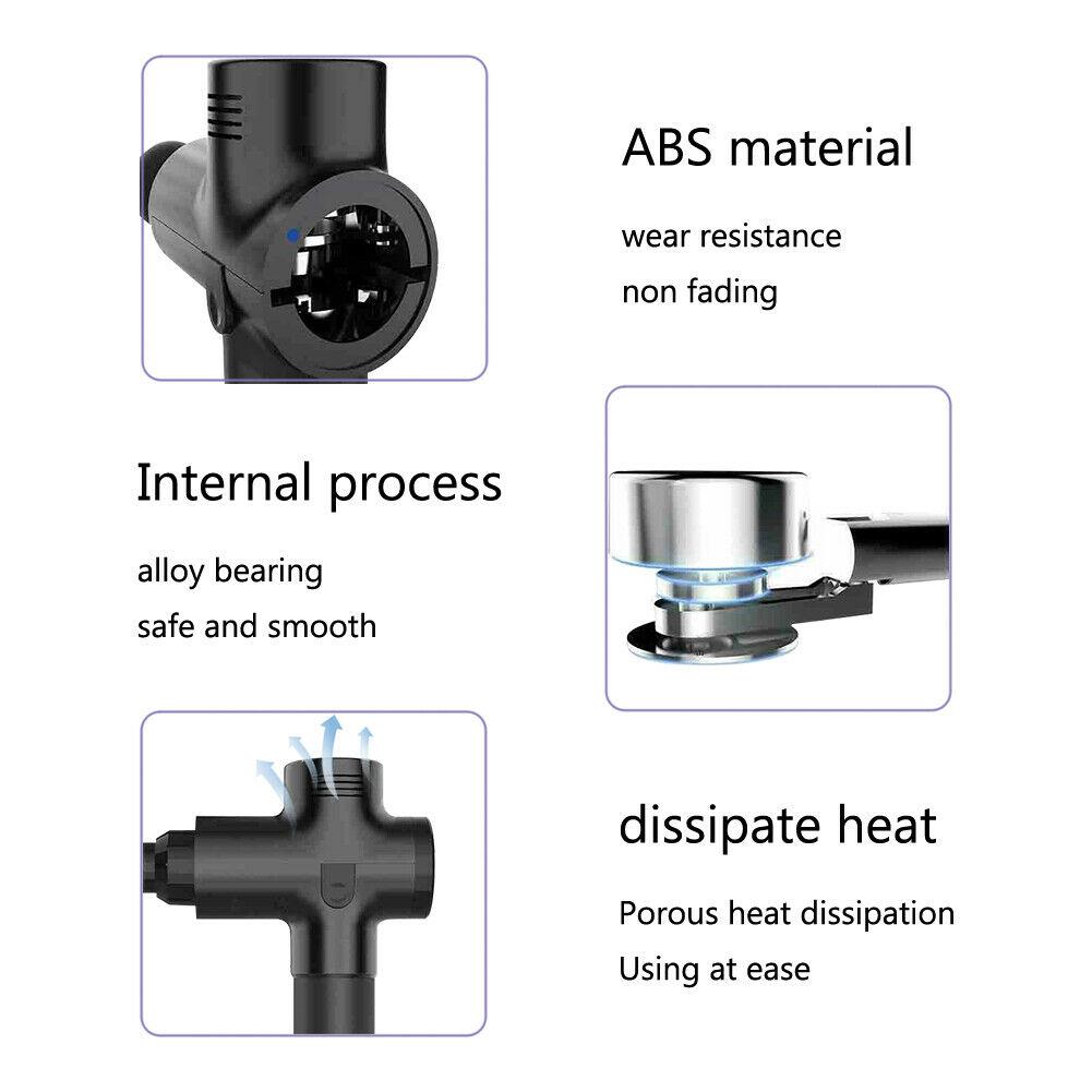 This massage gun features six interchangeable heads and an LED touch screen for easy control. It offers adjustable speeds and multiple massage modes to provide effective muscle relief, improve blood circulation, and reduce muscle stiffness. Its compact design makes it portable and suitable for deep tissue therapy at home or on the go.