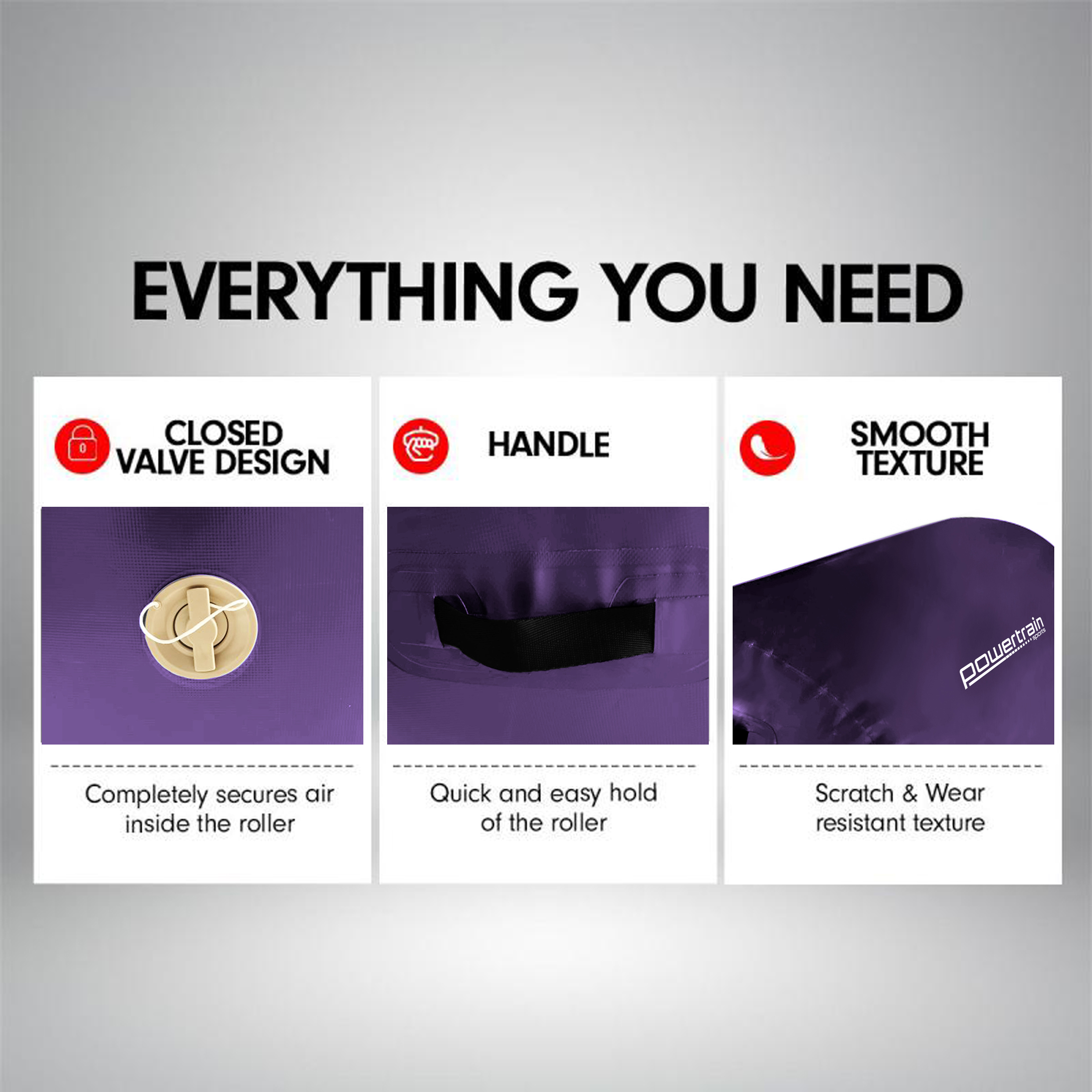 Powertrain Sports Inflatable Air Exercise Roller Gymnastics Gym Barrel 120 x 75cm Purple