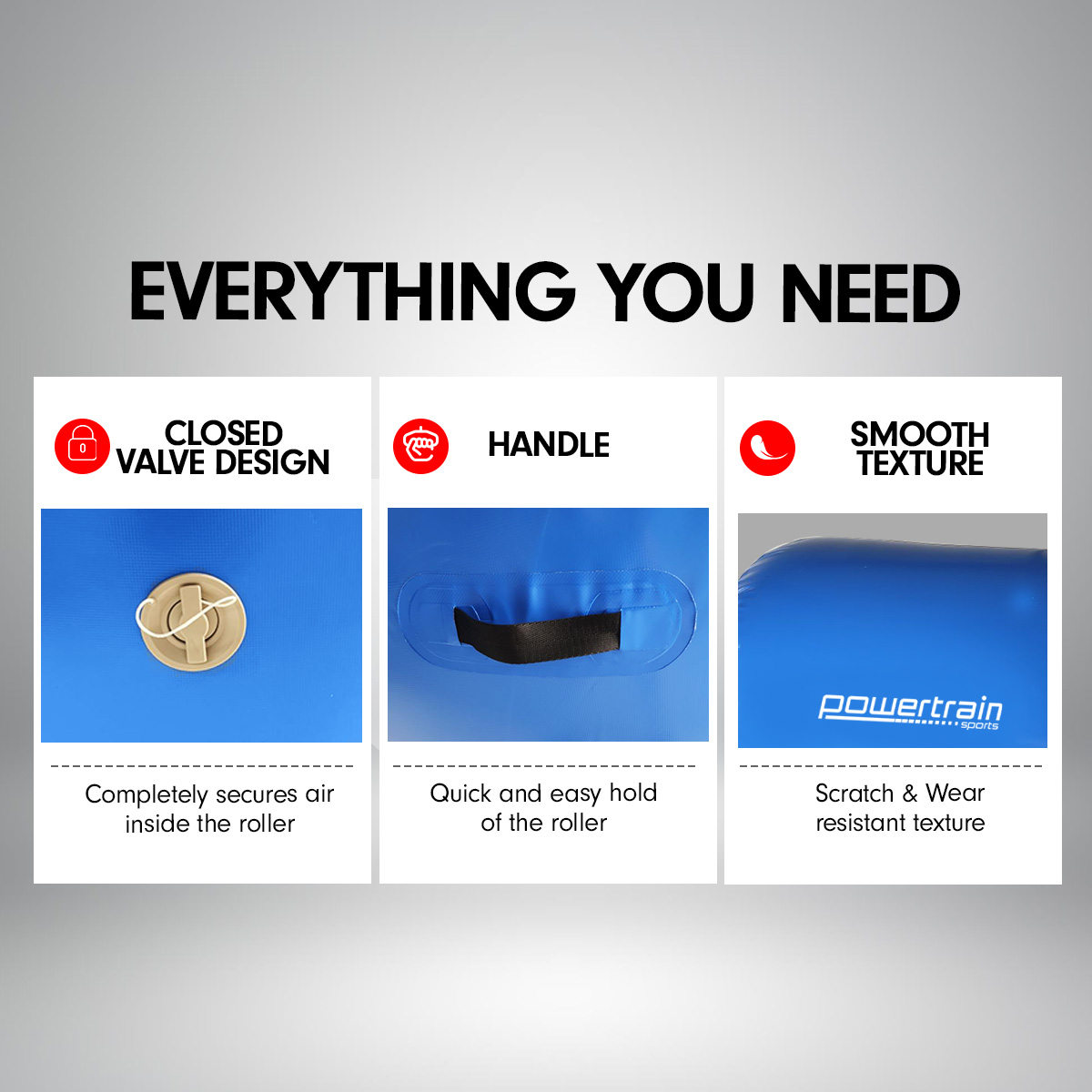 Powertrain Sports Inflatable Gymnastics Air Barrel Exercise Roller 120 x 75cm – Blue