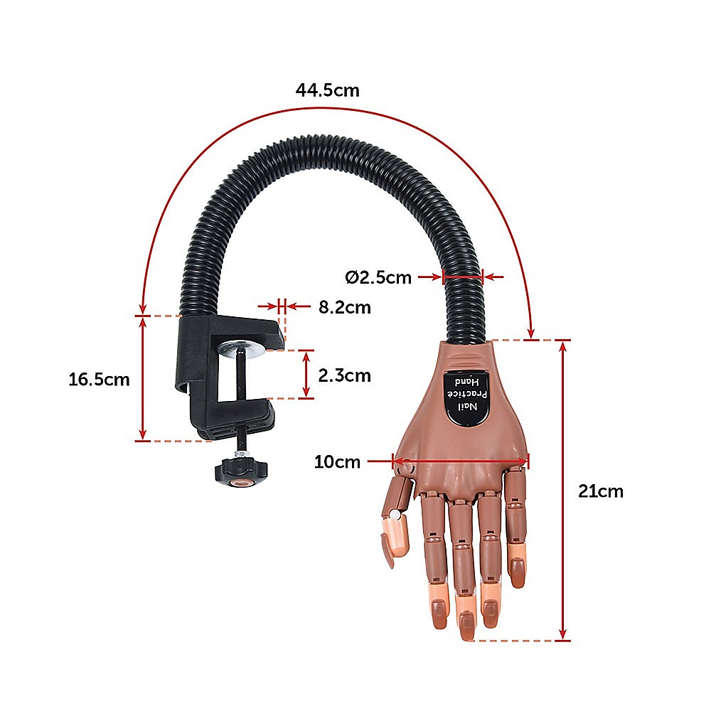 This practice hand model is designed for nail art training and display. Made from durable and flexible ABS material, it provides a realistic experience for practicing various manicure techniques. The hand can be securely clamped to a work surface, making it suitable for both professional training and personal practice. It includes reusable practice nails for gel, acrylic, or wrap manicures, allowing users to refine their skills repeatedly. The hand can also serve as a display mannequin to showcase finished nail art projects.