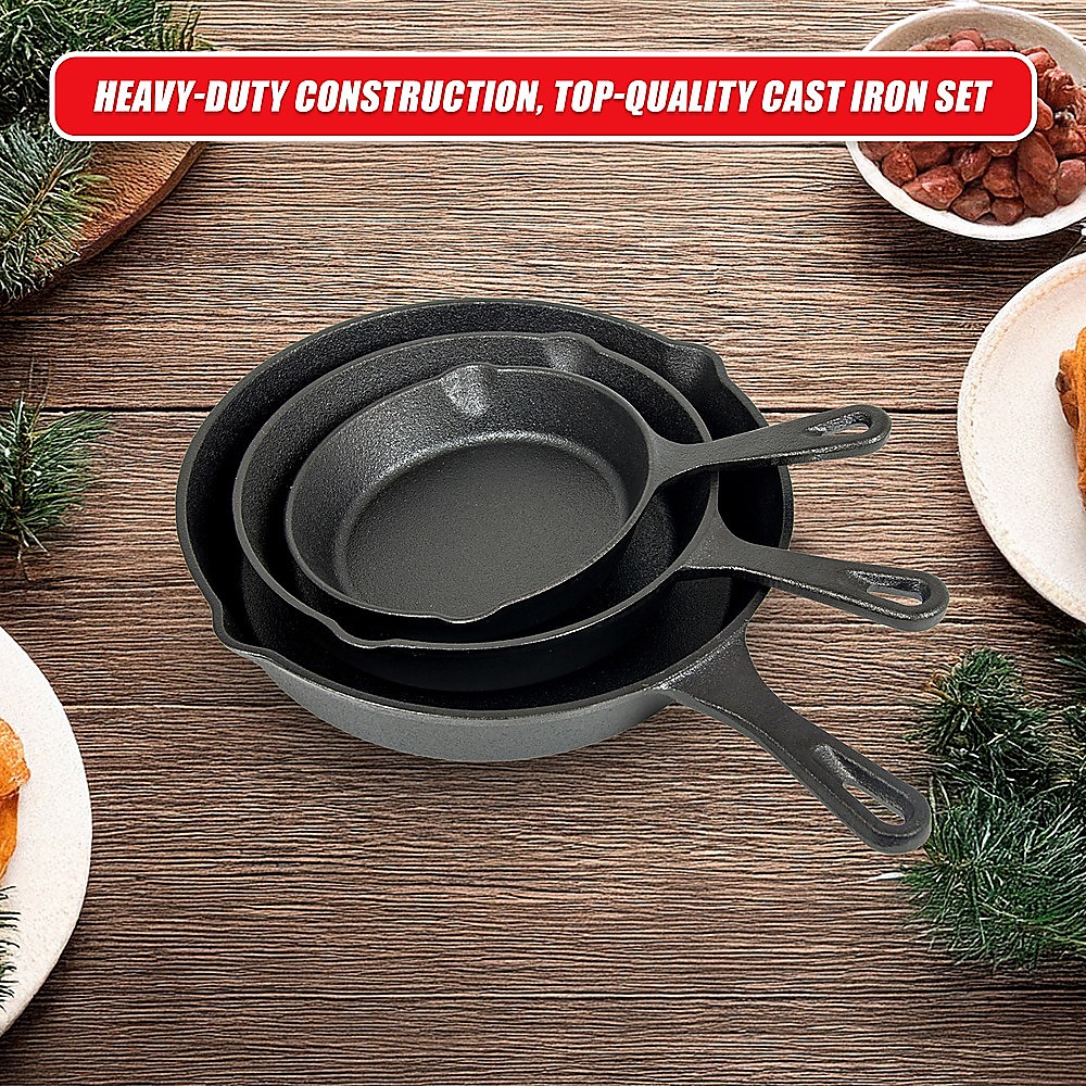 Pre Seasoned Cast Iron Skillet Fry Pan Set 3 Pcs Frying Pan Set