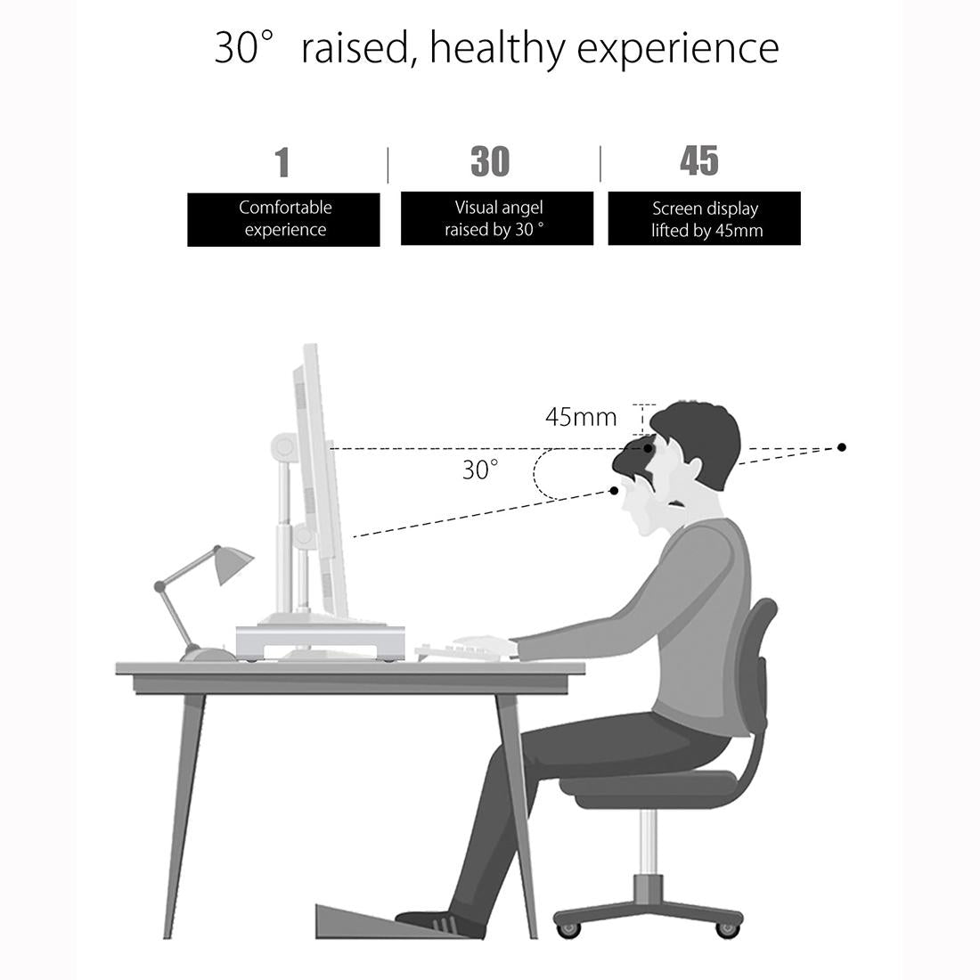 This premium monitor stand is crafted from high-quality aluminum alloy, offering durability and a sleek, modern appearance. It features cable management holes on both sides to keep wires organized and prevent clutter. The stand provides additional storage space on both the top and bottom layers, helping to maintain a tidy desktop. The bottom silicone pads ensure stability by preventing slipping and protecting your table surface.