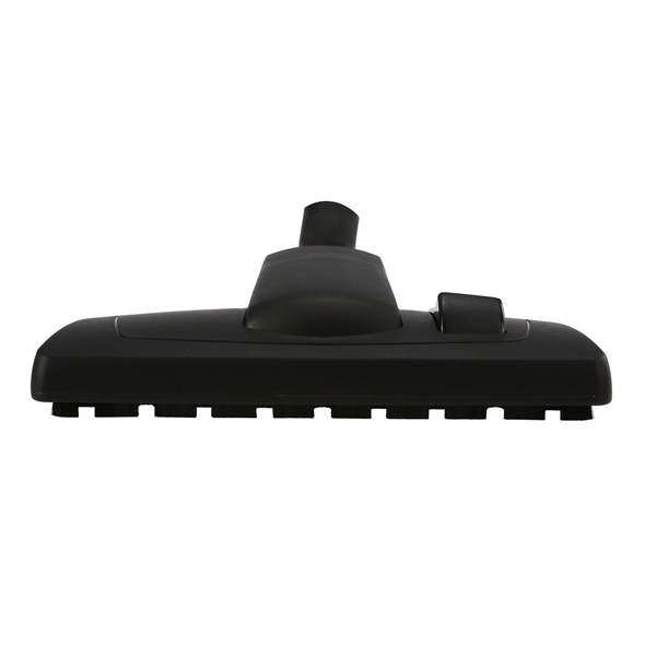 This vacuum cleaner floor head is designed for all ducted and central system vacuum setups. It features a sturdy construction suitable for various carpet and hard floor surfaces, providing an efficient and effortless cleaning experience. The head includes a convenient pedal to raise or release the brush and a large wheel at the base to reduce strain during movement, making vacuuming smoother and easier.