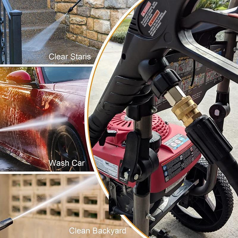 This pressure washer adapter set provides a convenient solution for connecting various pressure washer accessories. It features a quick connect design that allows for easy attachment and detachment, making your cleaning tasks more efficient. Made from durable metal and plastic materials, it ensures reliable performance and longevity.