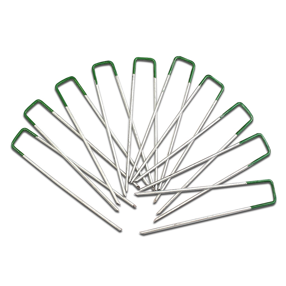 These synthetic grass pins are designed to securely anchor artificial turf and other ground coverings. Made from durable galvanized steel, they are suitable for various applications including weed mats, frost fleece, tents, and tarpaulins. The pins are strong, corrosion-resistant, and easy to install, ensuring your ground coverings stay in place effectively.