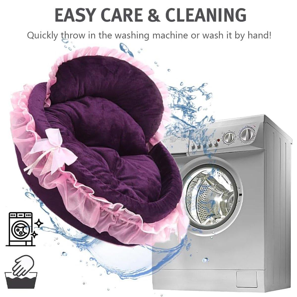 This soft and stylish pet bed provides a comfortable and elegant resting place for small pets such as cats and small dogs. Designed with a charming lace and bowknot, it adds a touch of sophistication to your home decor. The plush, removable cushion offers maximum comfort, while the anti-slip base ensures stability on various surfaces. Easy to clean and suitable for year-round use, this bed combines comfort, style, and practicality for your furry friend.