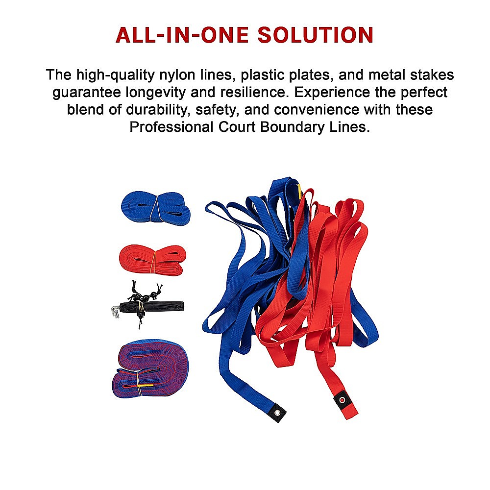 This adjustable court boundary line set transforms any beach or grass surface into a professional-grade playing field. Made from UV-protected, rip-resistant nylon, it offers durability, safety, and easy setup for various outdoor sports including beach volleyball, beach football, and badminton.