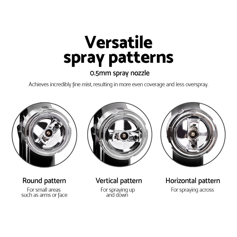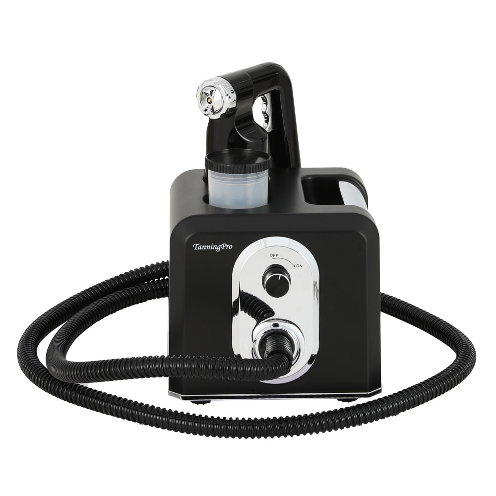 This professional spray tan machine gun offers a powerful and efficient tanning solution with a silent motor and advanced spray technology. It features adjustable settings and a heat function to enhance drying and comfort during use, making it suitable for both professional and personal tanning applications.