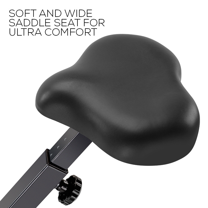 The folding magnetic exercise bike offers a compact and space-saving solution for home cardio workouts. It features an adjustable magnetic resistance system, a comfortable large seat, and a sturdy frame. The LCD monitor tracks essential workout metrics, and the bike can be easily folded for convenient storage, making it suitable for users of various sizes and fitness levels.