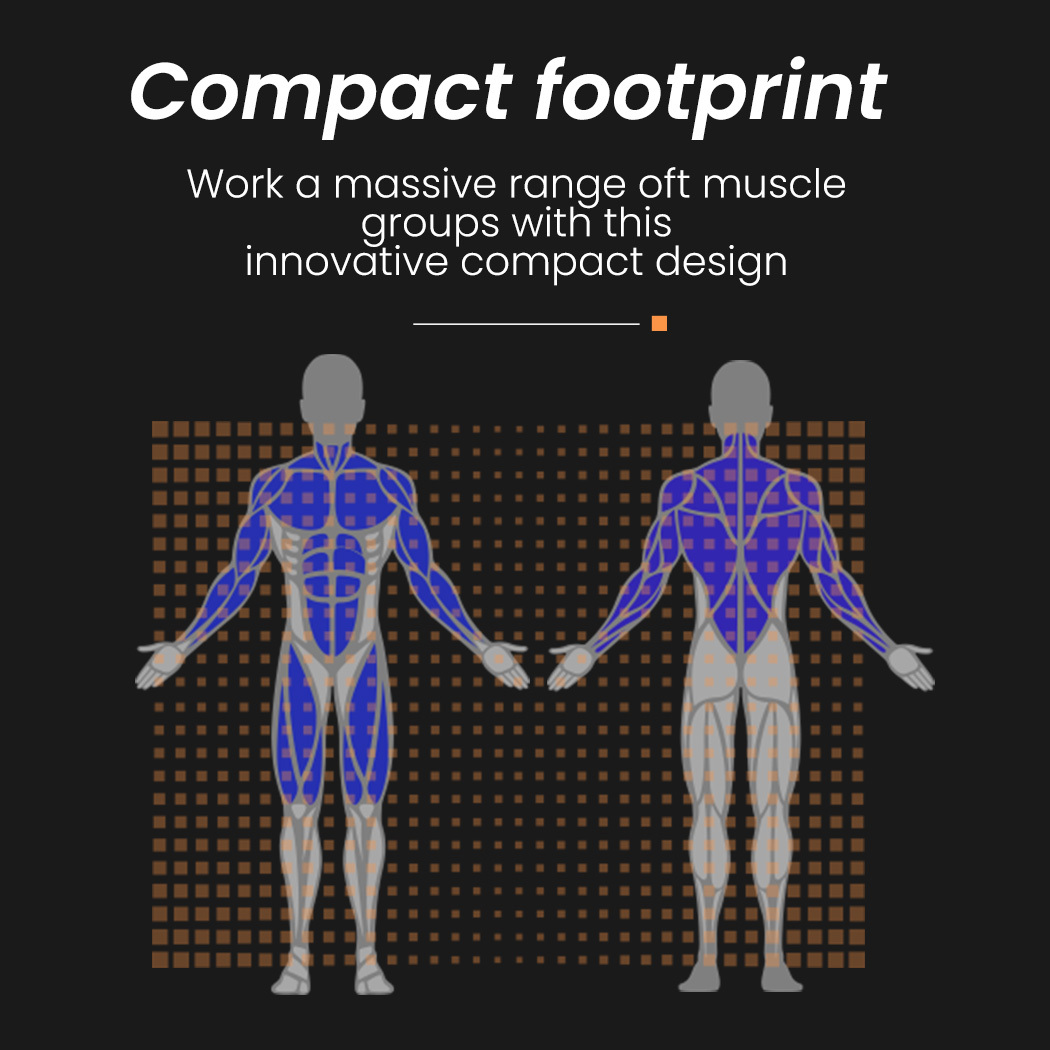This multi-station home gym set offers a comprehensive workout experience suitable for various fitness levels. It features a compact design that allows for over a dozen different exercises within a small space, making it ideal for home use. The adjustable weight stack ranges from 8lbs to 98lbs in 10lb increments, enabling personalized training routines.