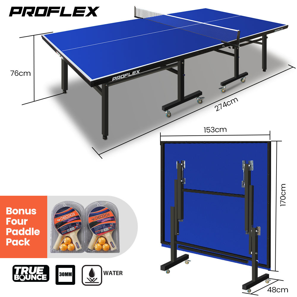 Proflex Table Tennis Table, with 4 Player Ping Pong Paddle and Pingpong Ball Pack