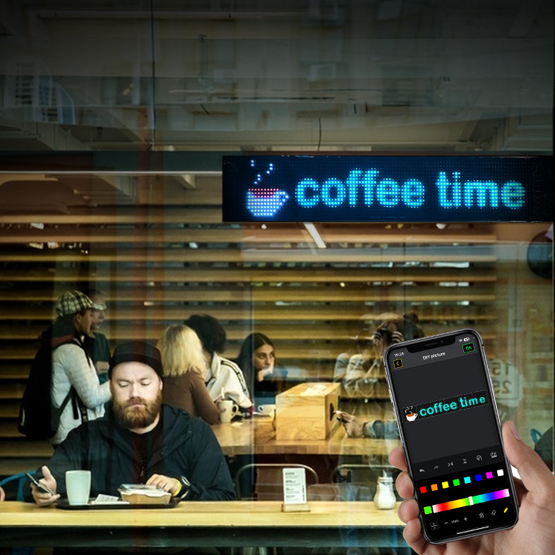 This programmable LED matrix panel features a flexible, ultra-thin design with IP65 waterproof rating, making it suitable for various outdoor and indoor applications. Controlled via a Bluetooth-connected app, it allows easy customization of brightness, display modes, and settings. Equipped with 1536 RGB LED beads, it provides bright, colorful visuals and full DIY functionality for displaying custom text and patterns, ideal for promotional, personal, or creative use.