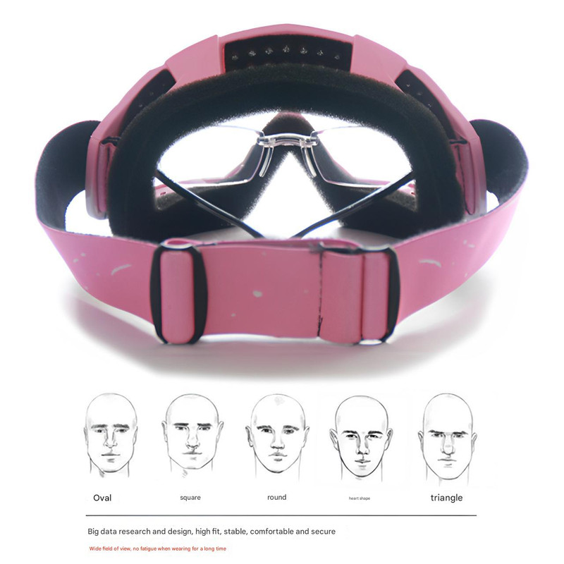 Progressive Pink + Imitation Red Lenses Outdoor Protective Motorcycle Goggles – Windproof, Dustproof, Skiing, and Cycling Eyewear – Lightweight Anti-Fog Design for Men and Women