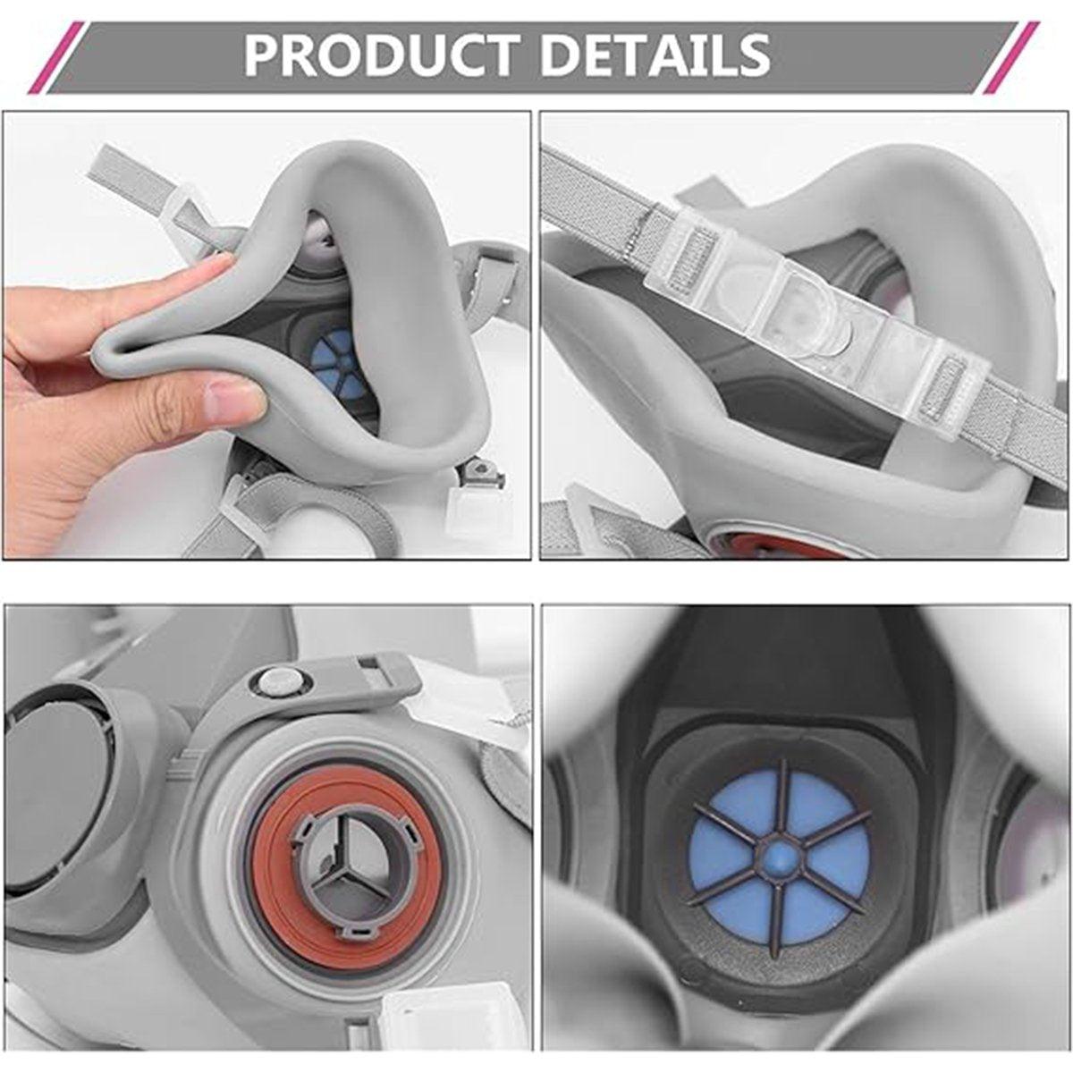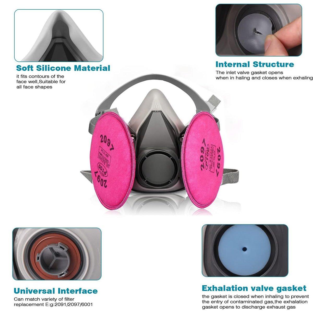 This protective half mask is designed to offer reliable protection against dust, particles, fumes, and organic vapours. It is suitable for various applications including painting, pesticide spraying, decoration, woodworking, and renovation projects. Made from soft silicone, it provides a comfortable fit for different face shapes and ensures a secure seal. The mask features replaceable filters for effective filtration and is reusable with easy cleaning and maintenance. Adjustable straps help achieve a customized and stable fit for prolonged use.