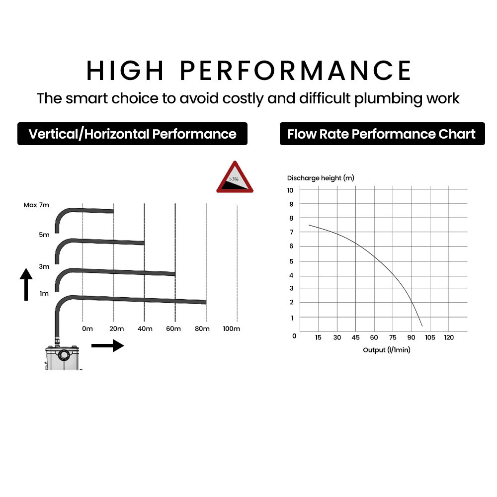 This macerator pump offers a versatile and convenient solution for installing wet areas in your home without extensive plumbing work. It is suitable for various applications including toilets, sinks, showers, and washing machines, making it ideal for transforming spaces such as basements or utility rooms into functional wet areas.