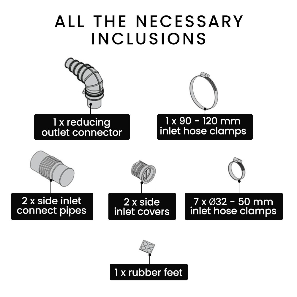 - 1 x Inlet hose clamp (90-120mm)