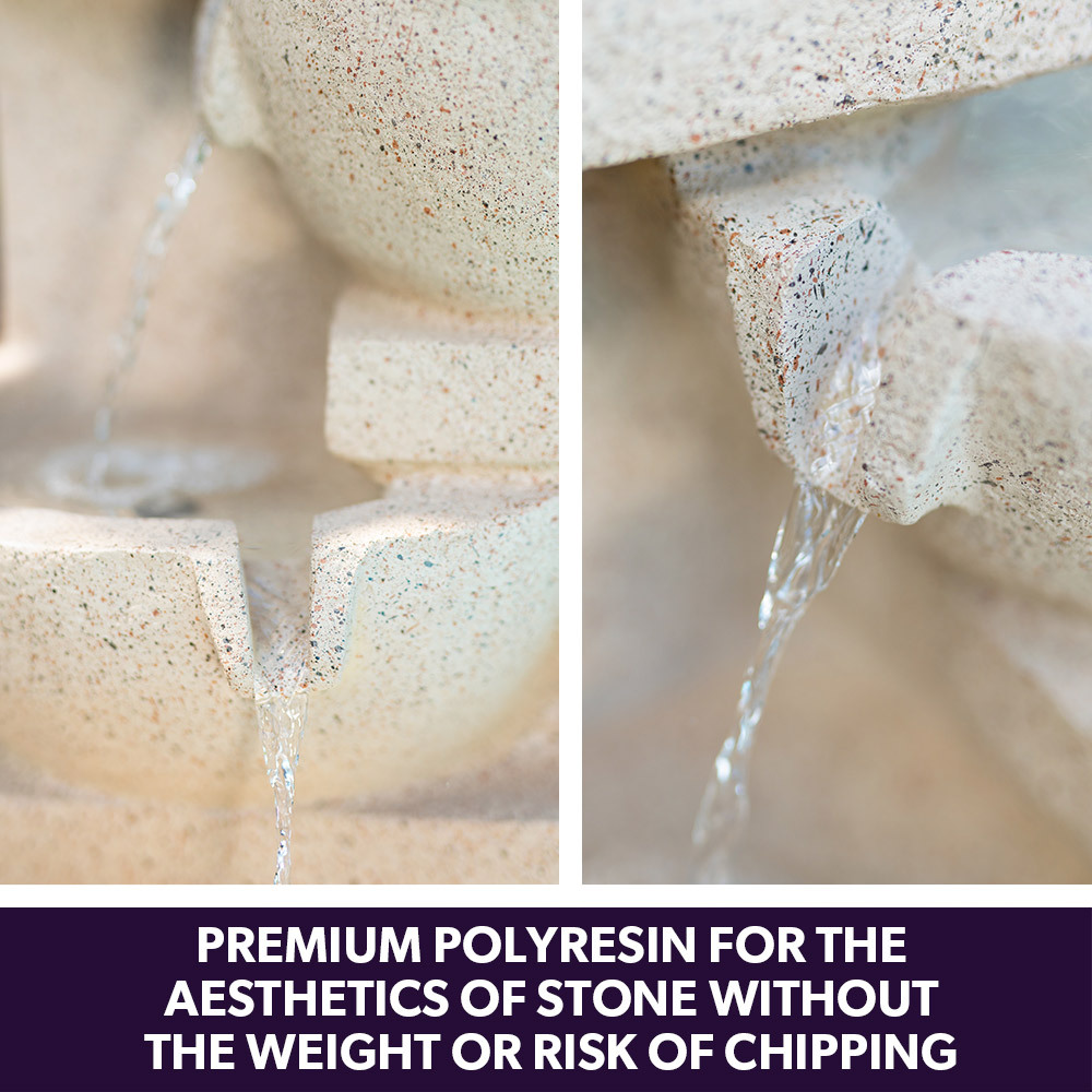 PROTEGE Solar Fountain Water Feature Outdoor 4 Bowl with LED Lights – Sand Colour