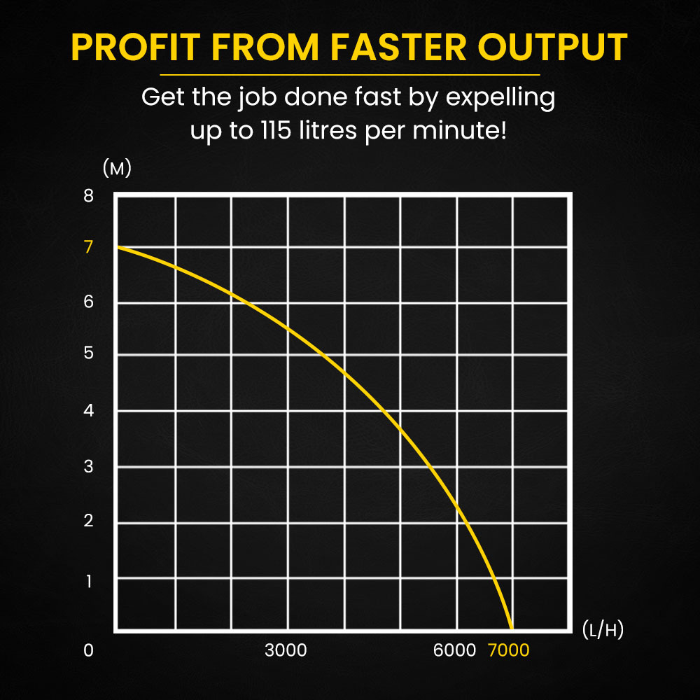 - Powerful 400W motor with a flow rate of 7,000 liters per hour