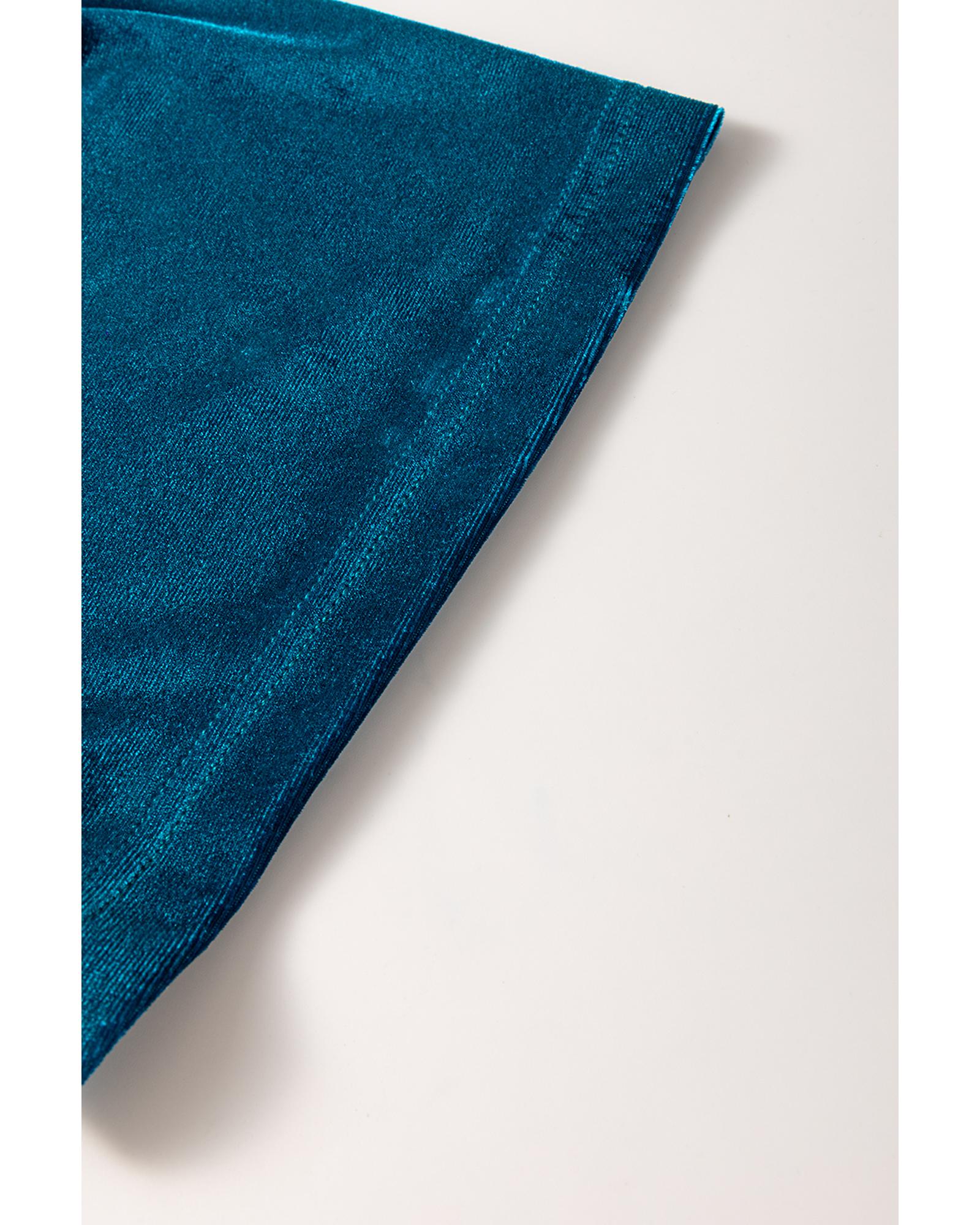 Prussian Blue Velvet Short Sleeve Shirred Waist Tiered Maxi Dress – M