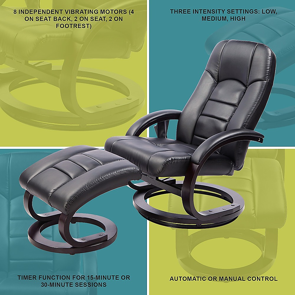 • Eight vibration motors positioned on the seat back, seat, and footrest provide comprehensive massage coverage.