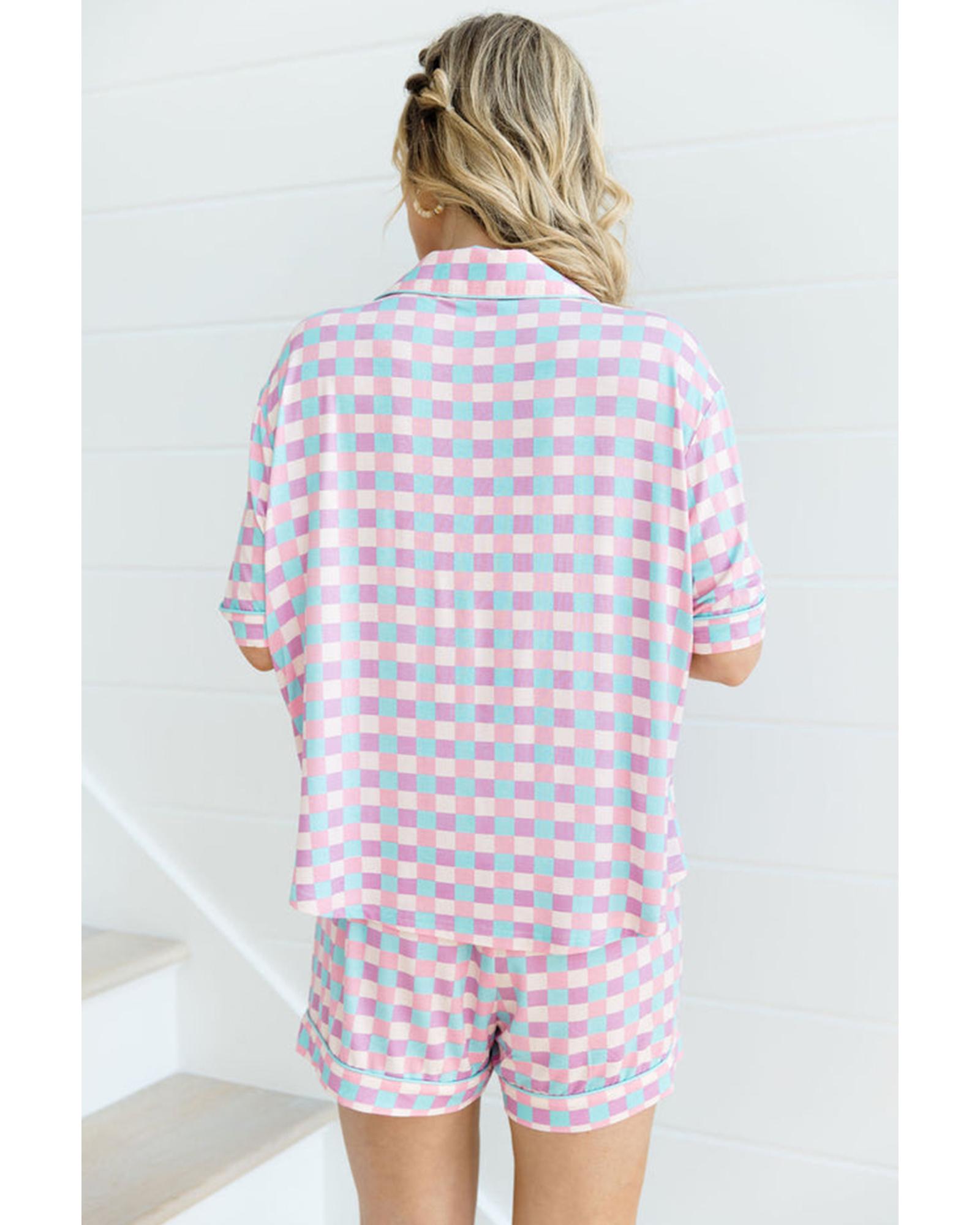Purple Checkered Pattern Short Sleeve Pajamas Set – XL