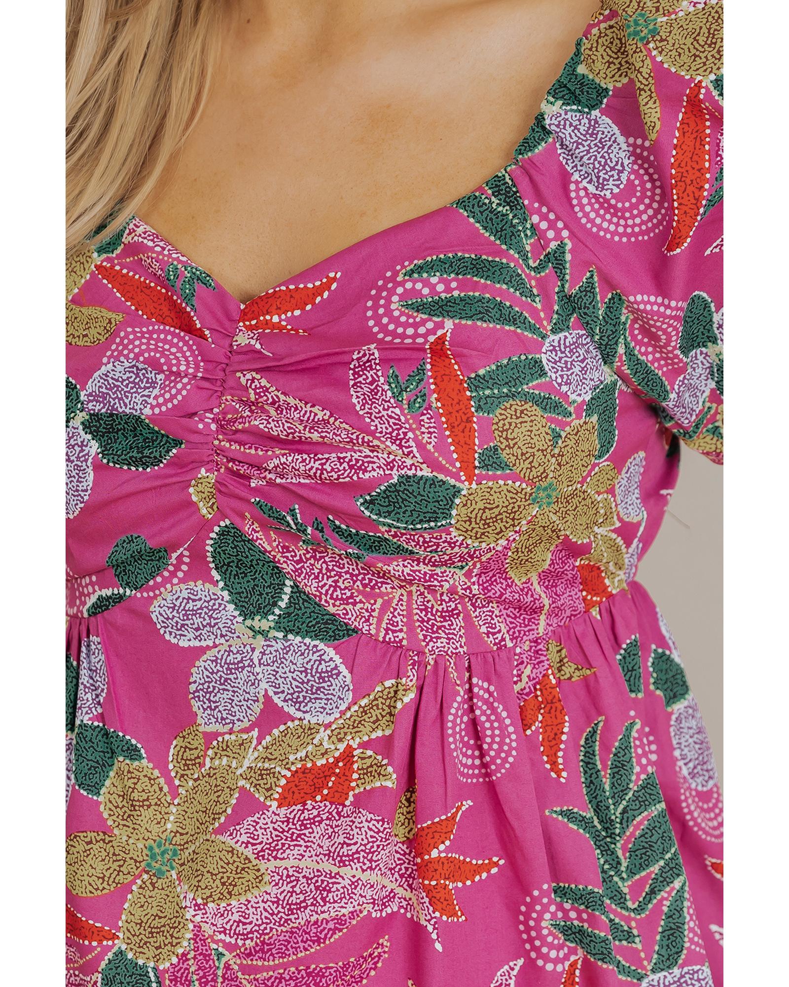 Purple Floral Print Sweetheart Neck Flutter Sleeve Blouse – S