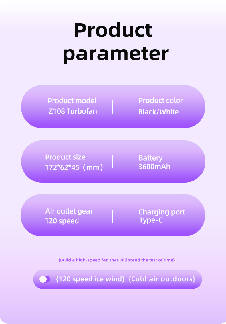 This portable handheld fan features a digital display with 120 adjustable speed levels, providing customizable airflow for effective cooling. It is USB rechargeable, lightweight, and designed for outdoor use, making it convenient to carry and operate anywhere.