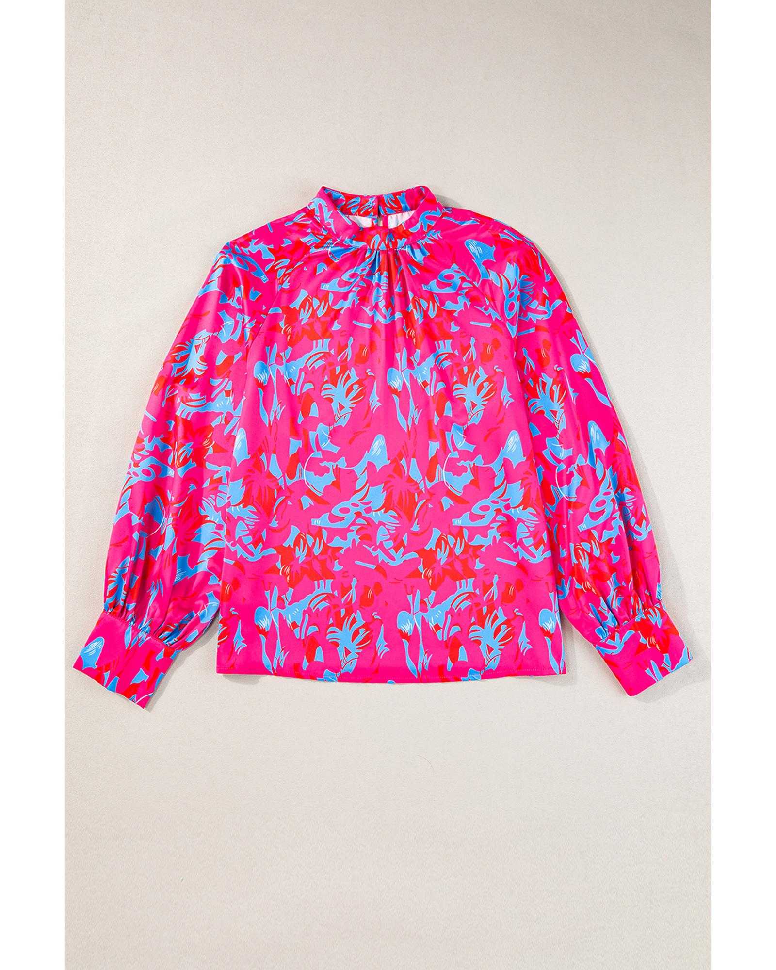 - 1 x Purple Printed Bubble Sleeve Mock Neck Blouse
