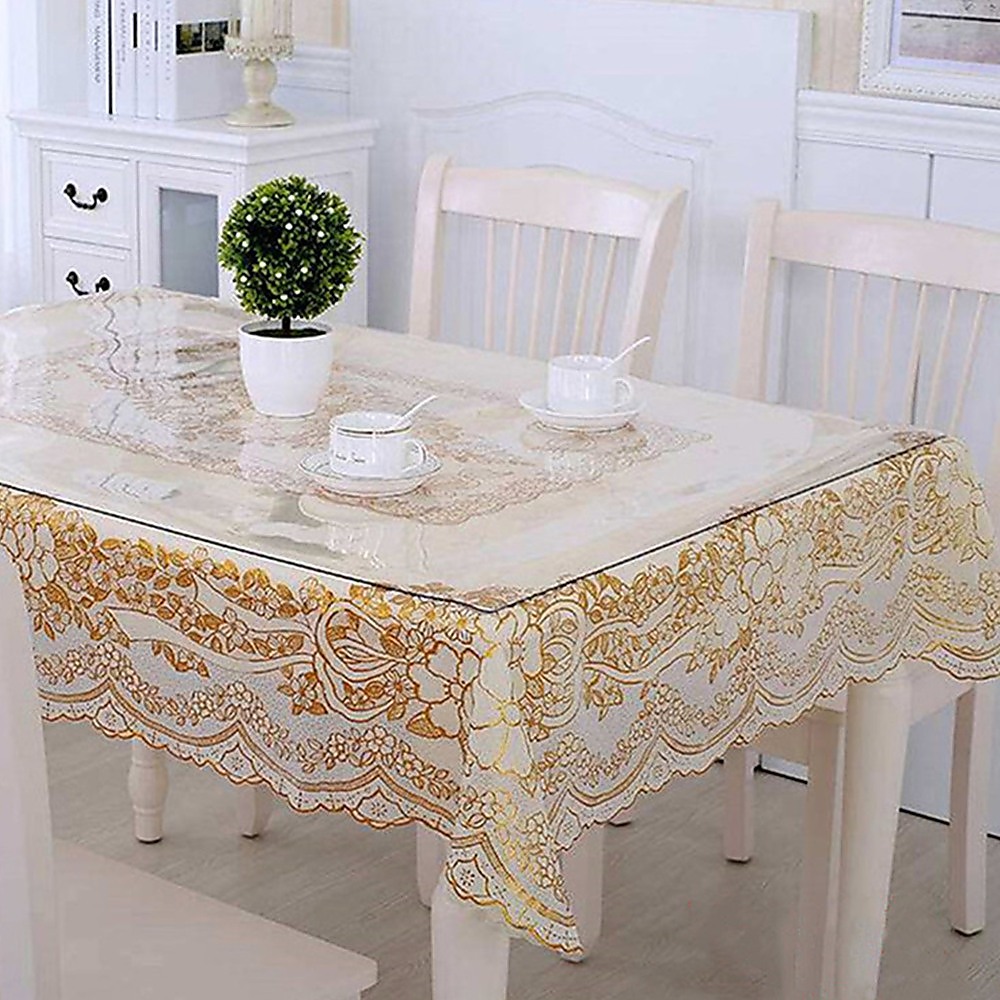 This large, clear plastic tablecloth protector is designed to safeguard your table surface during various events or home projects. Its flexible material allows for easy placement and customization to fit different table sizes and shapes. The transparent design enables you to showcase your decorative tablecloth or underlying surface while providing effective protection. It is simple to clean and reusable, making it a practical choice for both temporary and long-term use.
