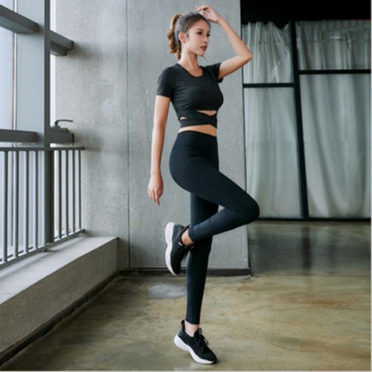 This quick-drying running suit is designed for comfort and performance, made from breathable, sweat-absorbing fabric. It features an elastic waistband for a snug yet comfortable fit, suitable for active wear and outdoor activities.