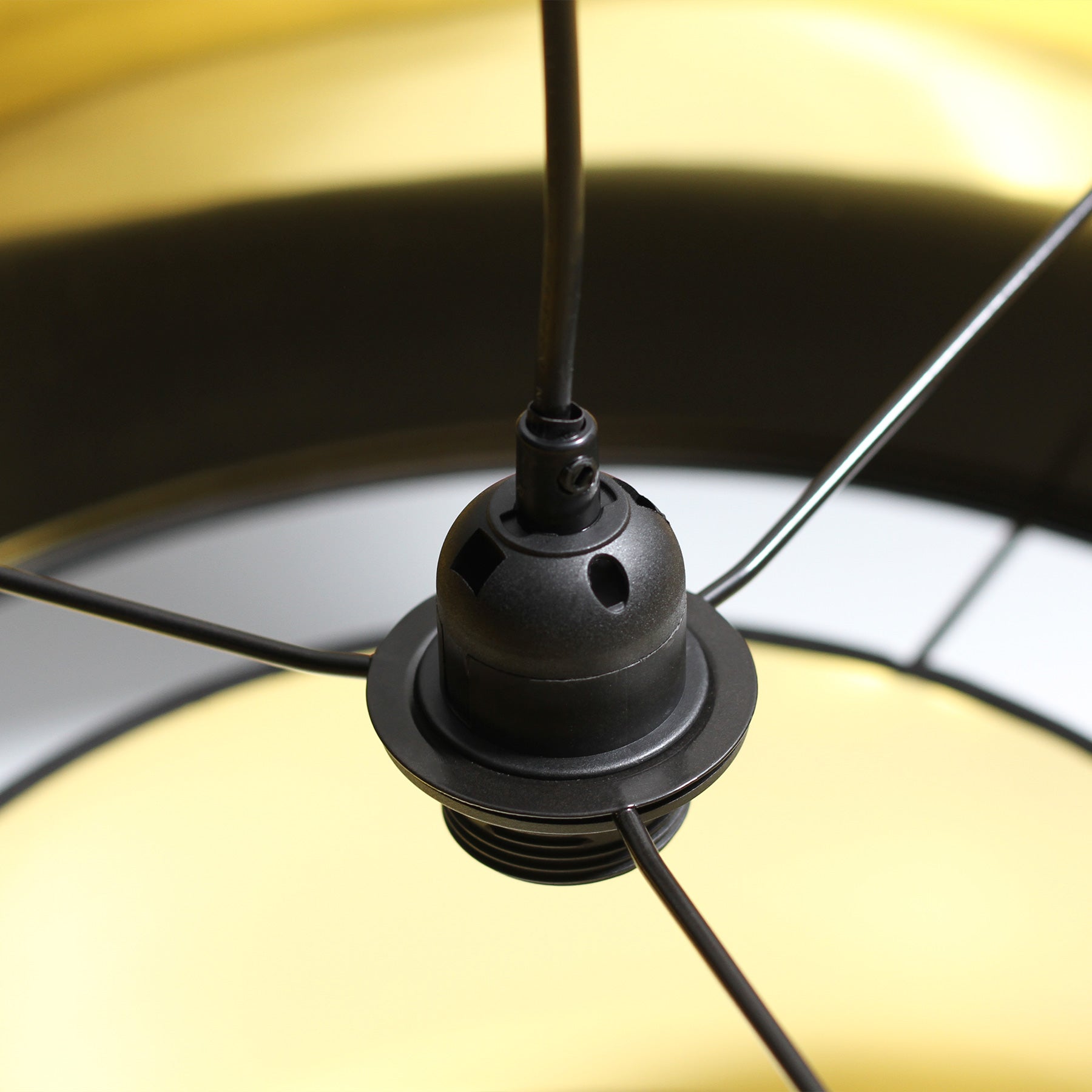 The pendant light features a contemporary design with two fabric shades, creating a glamorous and warm glow suitable for various interior spaces such as dining rooms, lounges, and bedrooms. Its sleek appearance and adjustable cord make it a versatile addition to modern and chic decor styles.