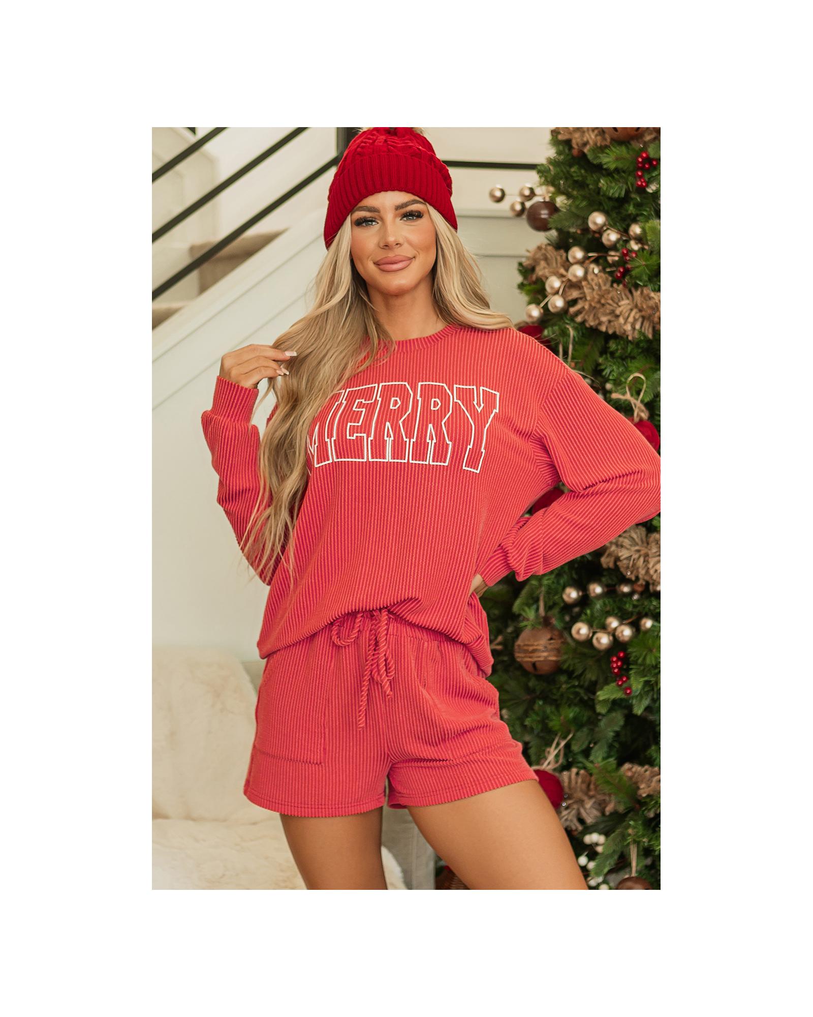 Racing Red Corded MERRY Graphic Long Sleeve Top and Shorts Set – 2XL