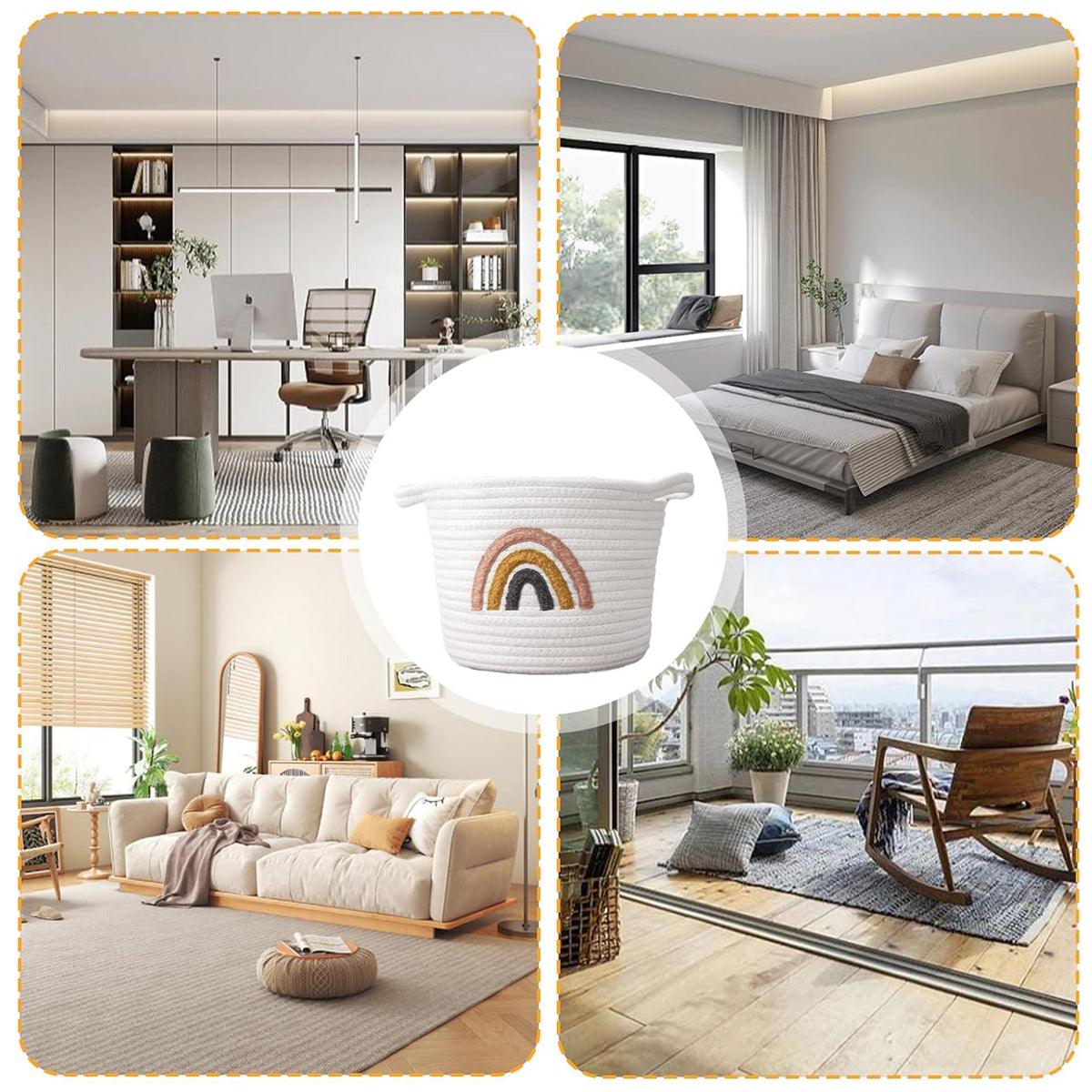 This cotton rope storage basket combines practicality with a charming design, making it a versatile addition to your home organization. It is suitable for storing toys, books, clothes, and other small items, and features sturdy handles for easy transport. Its attractive appearance and durable construction make it ideal for use in nurseries, bedrooms, or living rooms.