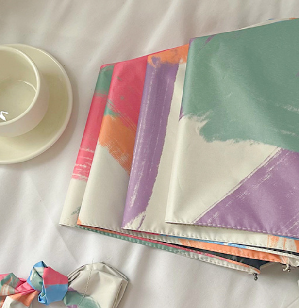 This charming patterned folding umbrella offers excellent sun and rain protection in a compact and stylish design. Its five-fold, six-rib construction ensures durability and stability, making it a reliable accessory for everyday use. The umbrella features high-quality water-resistant fabric and a black glue coating for added heat insulation and UV protection, providing a comfortable experience in various weather conditions.