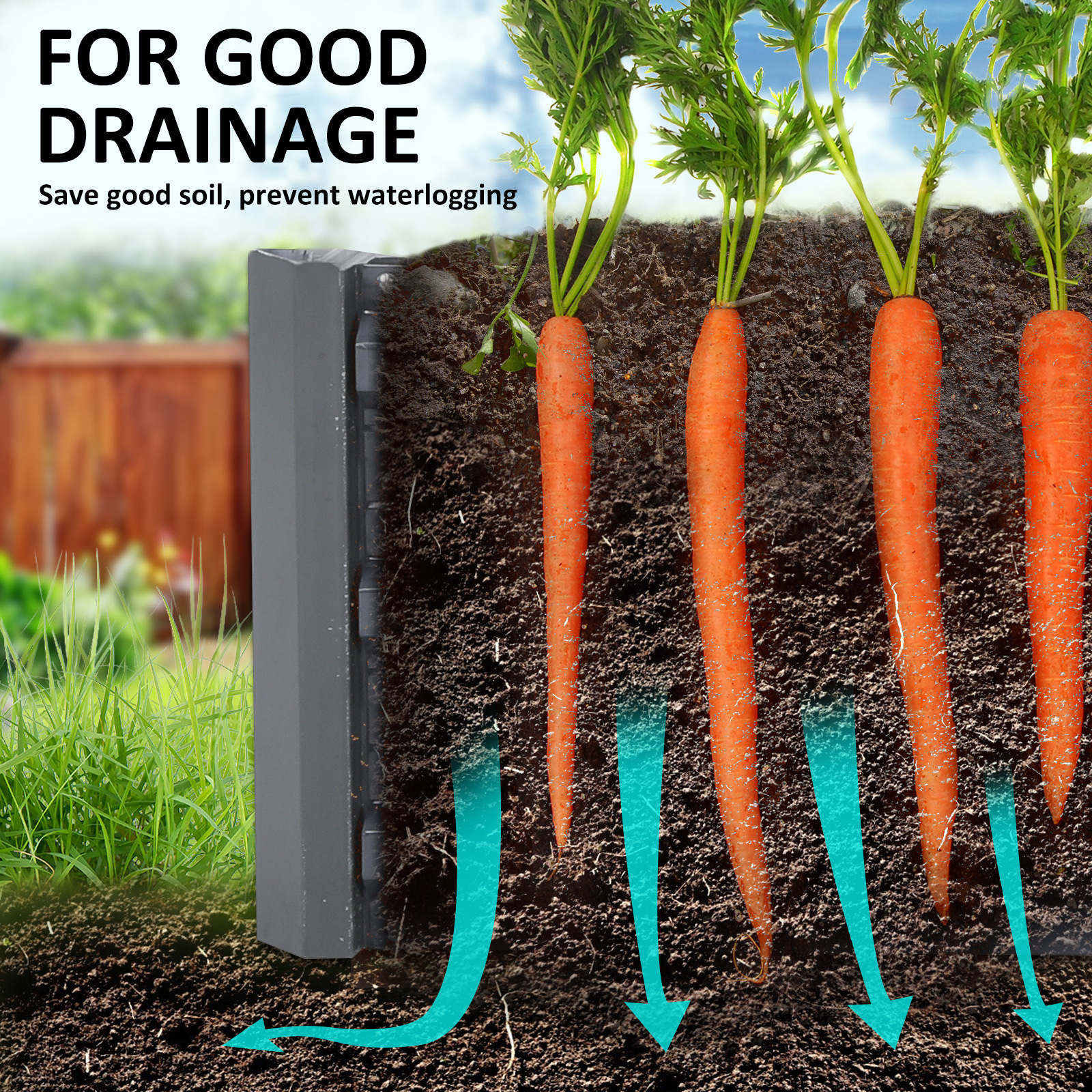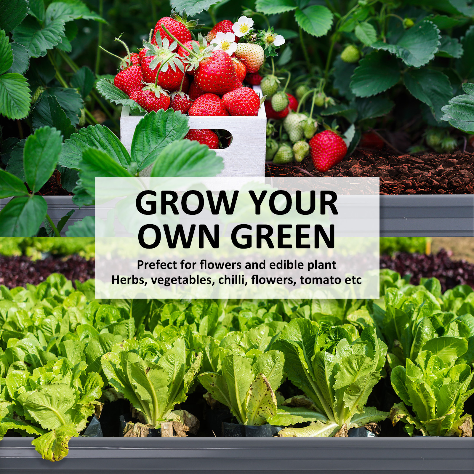 This raised garden bed offers a versatile solution for growing plants in various locations such as patios, balconies, rooftops, or even on concrete and heavy clay soils. Its design promotes good drainage, prevents soil compaction, and acts as a barrier against pests, making it ideal for cultivating flowers and edible plants like vegetables, herbs, and fruits.