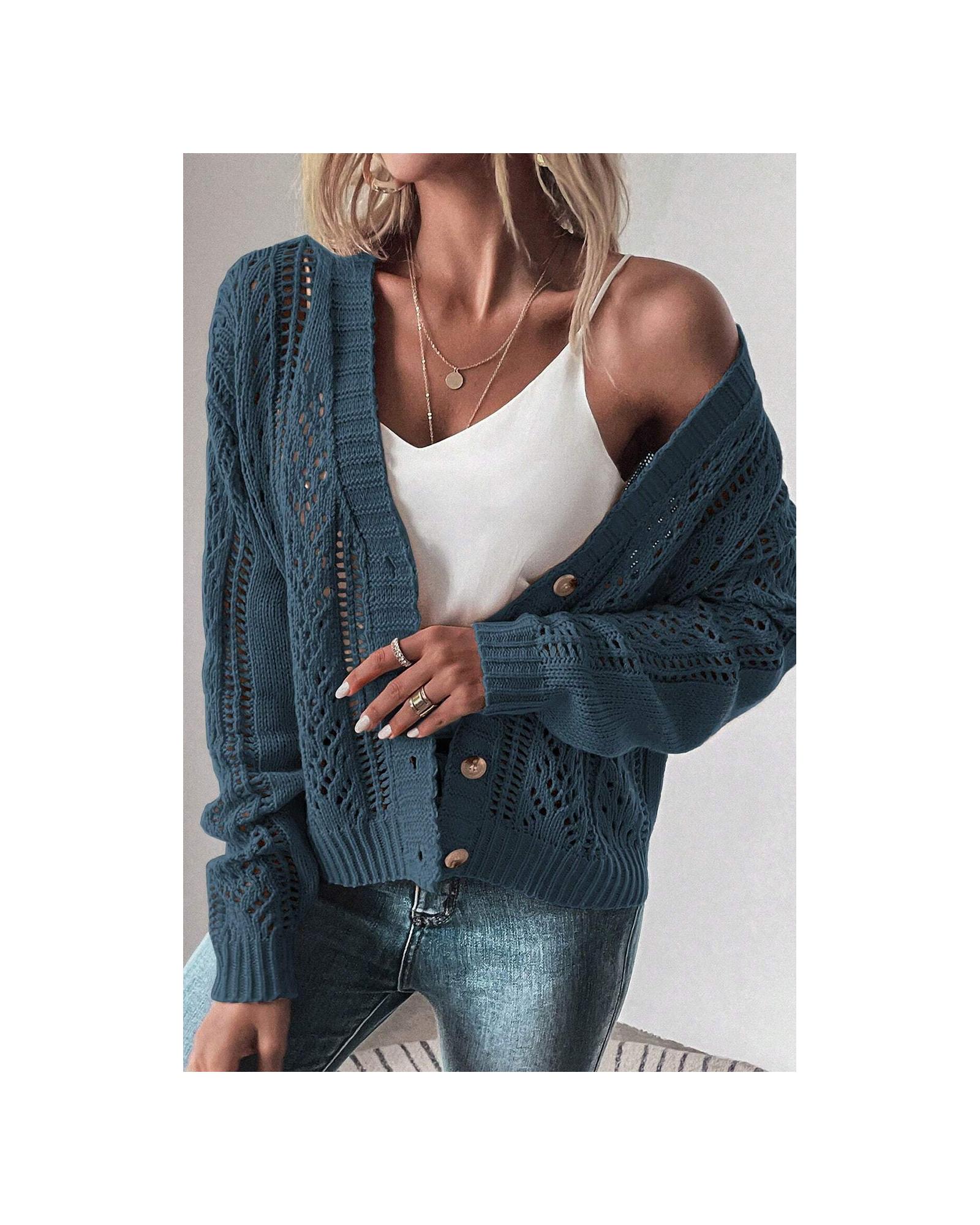 This open knit sweater cardigan features a trendy and versatile design, perfect for layering and suitable for various occasions. Its relaxed drop shoulder silhouette offers a chic and modern look, while the soft fabric ensures comfort throughout the day.