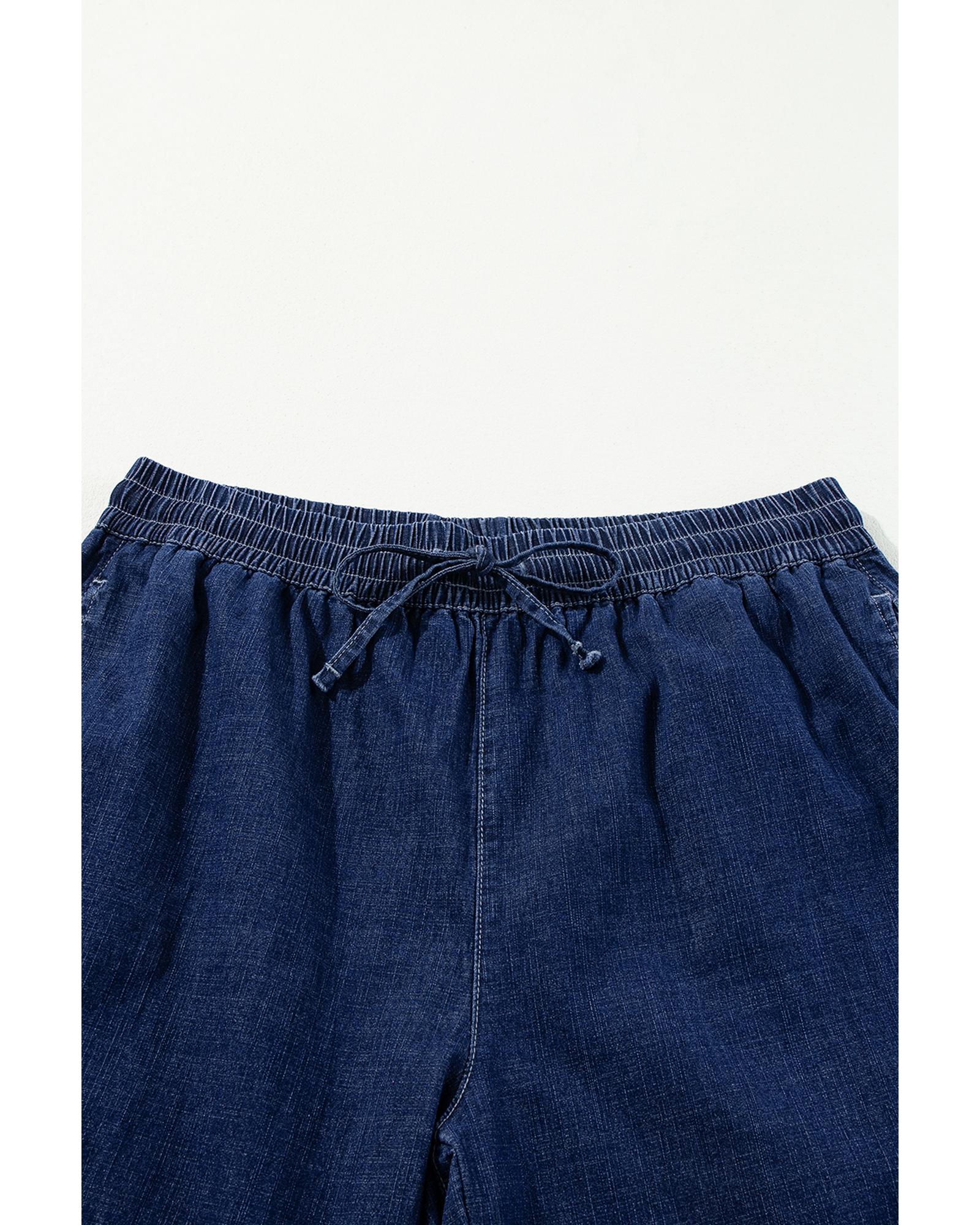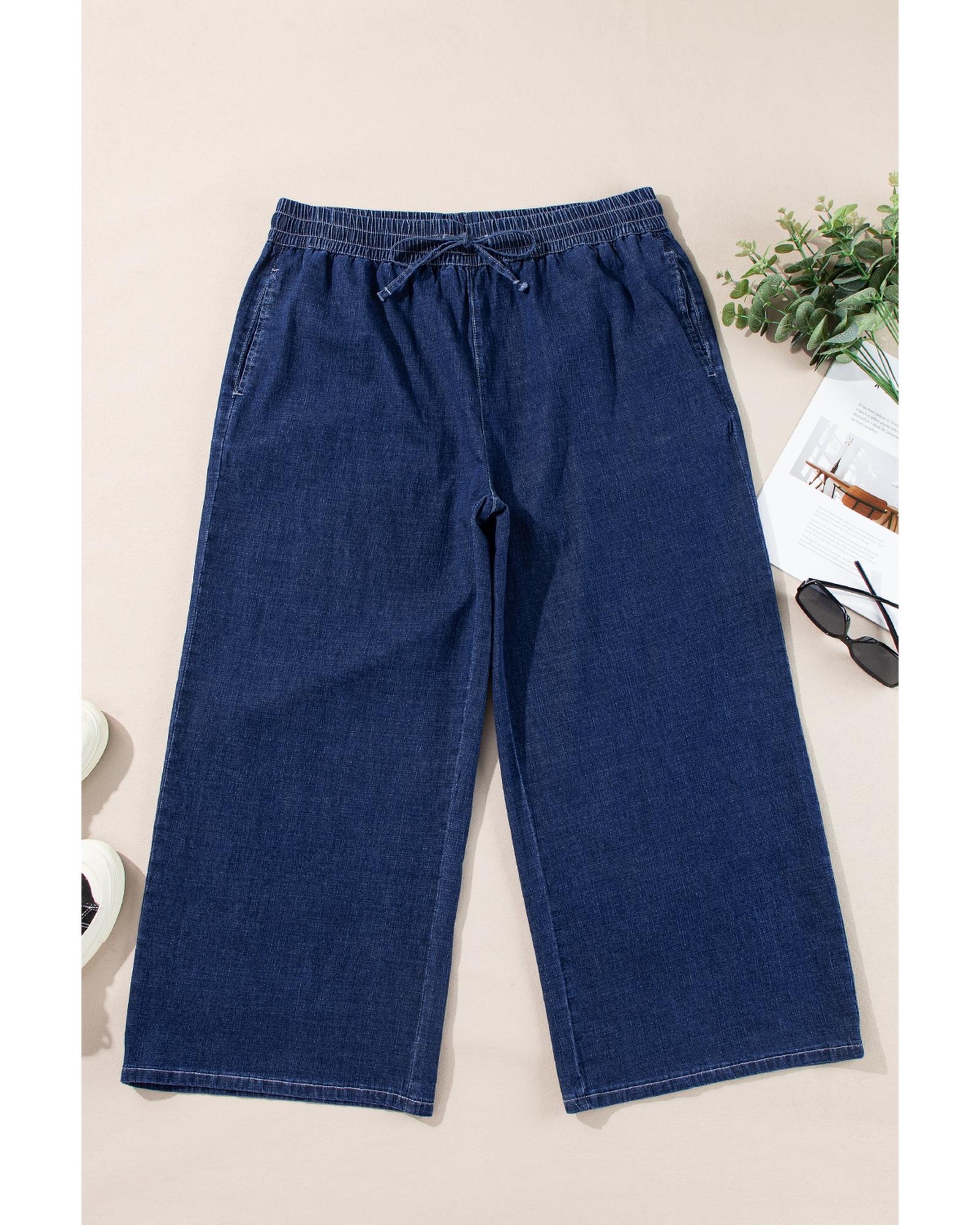 Real Teal Plus Size Drawstring High Waist Wide Leg Casual Jeans – 3X