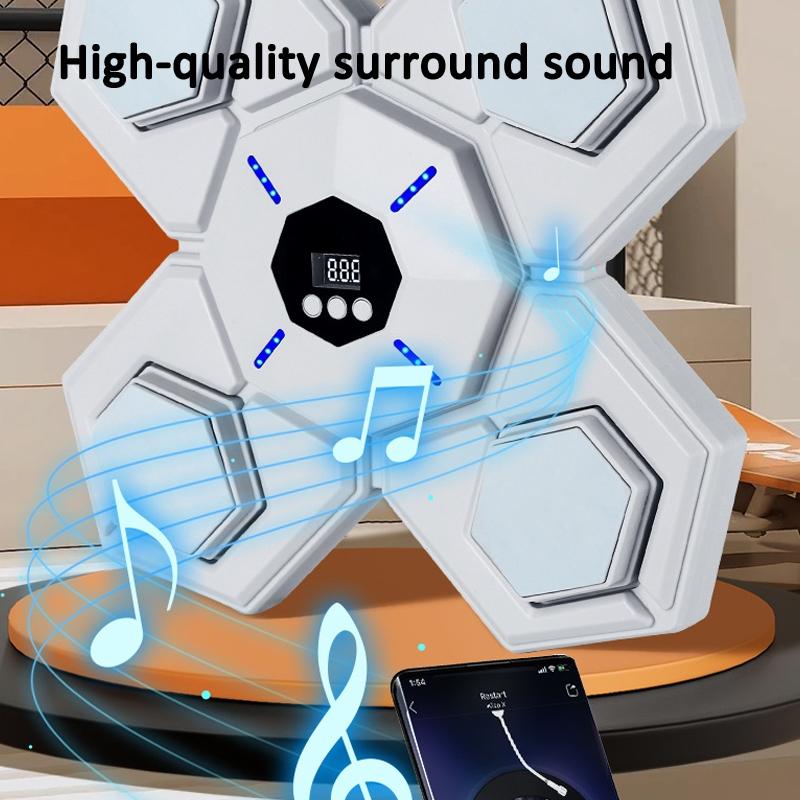 This rechargeable Bluetooth boxing machine is designed for both adults and children, providing an engaging and interactive workout experience. It features a soft hitting surface to protect the hands, smart energy consumption visualization, and a punch-free design to prevent wall damage. The device is equipped with adjustable settings for easy operation and a built-in rechargeable battery for convenience.