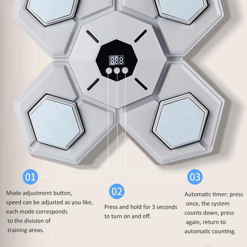 This rechargeable Bluetooth boxing machine is designed for both adults and children, providing an engaging and interactive workout experience. It features a soft hitting surface to protect the hands, a smart counting system to track energy expenditure, and a punch-free design to prevent wall damage. The device connects easily to smartphones via Bluetooth, allowing users to listen to music while exercising. It is equipped with a built-in rechargeable battery for convenience and portability.