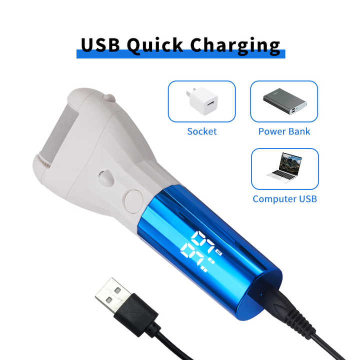 This rechargeable electric callus remover is designed to help you achieve smooth and beautiful feet effortlessly. It features adjustable speeds, a clear LED display, and a long-lasting battery, making it an ideal choice for at-home foot care.