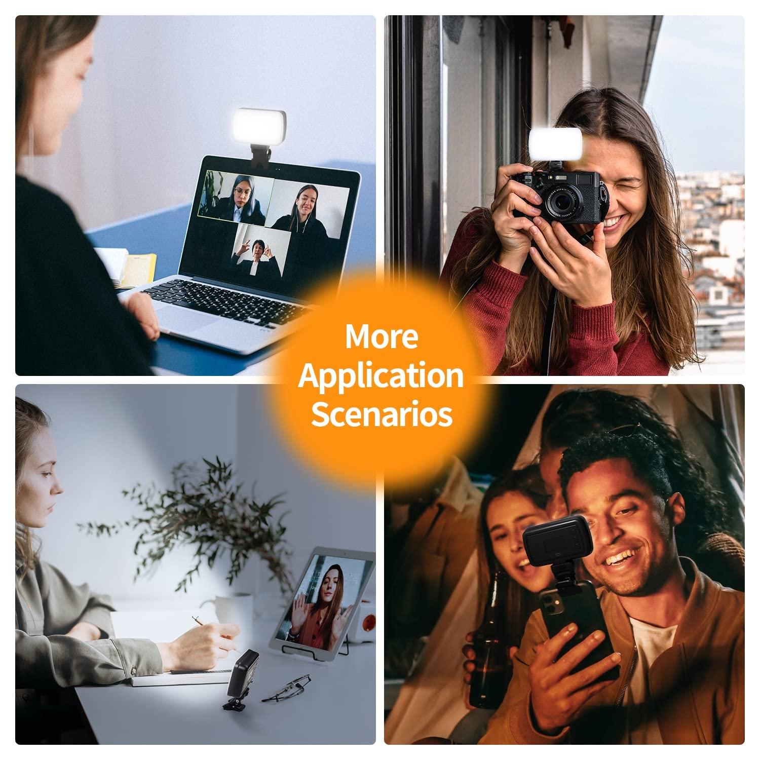 This rechargeable video conference lighting offers versatile illumination with three adjustable colour temperatures, making it suitable for photography, video conferencing, remote work, live broadcasting, video recording, makeup, and travel vlogging. Its compact and portable design ensures easy transportation and space-saving setup, while the firm clip with a soft silicone non-slip pad protects your device’s screen. The built-in battery provides extended usage time, supporting various brightness levels and adjustable angles for optimal lighting during video calls or recordings.