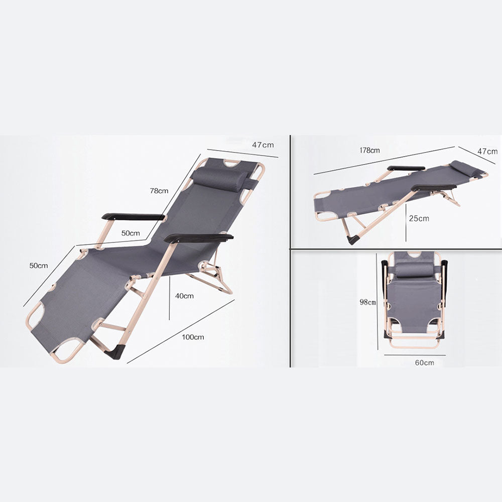 Reclining Sun Beach Deck Lounge Chair Outdoor Folding Camping Fishing Arm Rest – grey