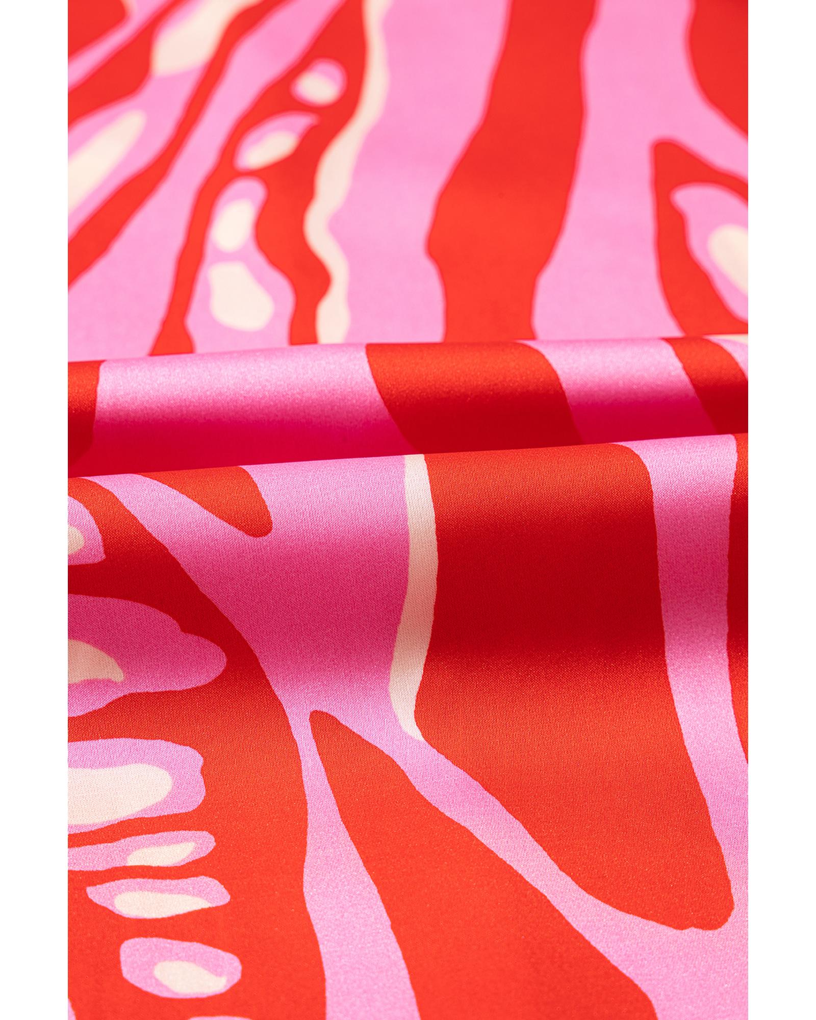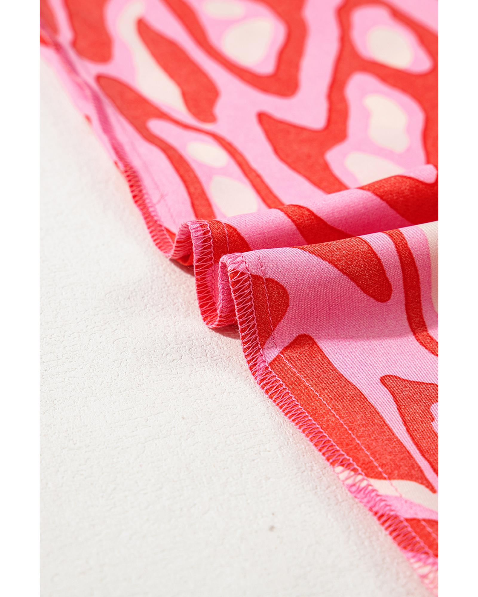 Red Abstract Print V Neck Batwing Sleeve Oversized Blouse – M