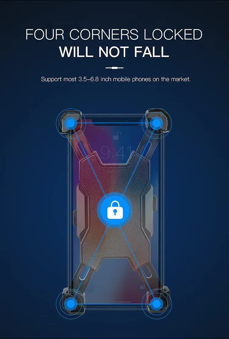 - Four-corner mechanical grip ensures your device stays firmly in place, even on rough terrains.