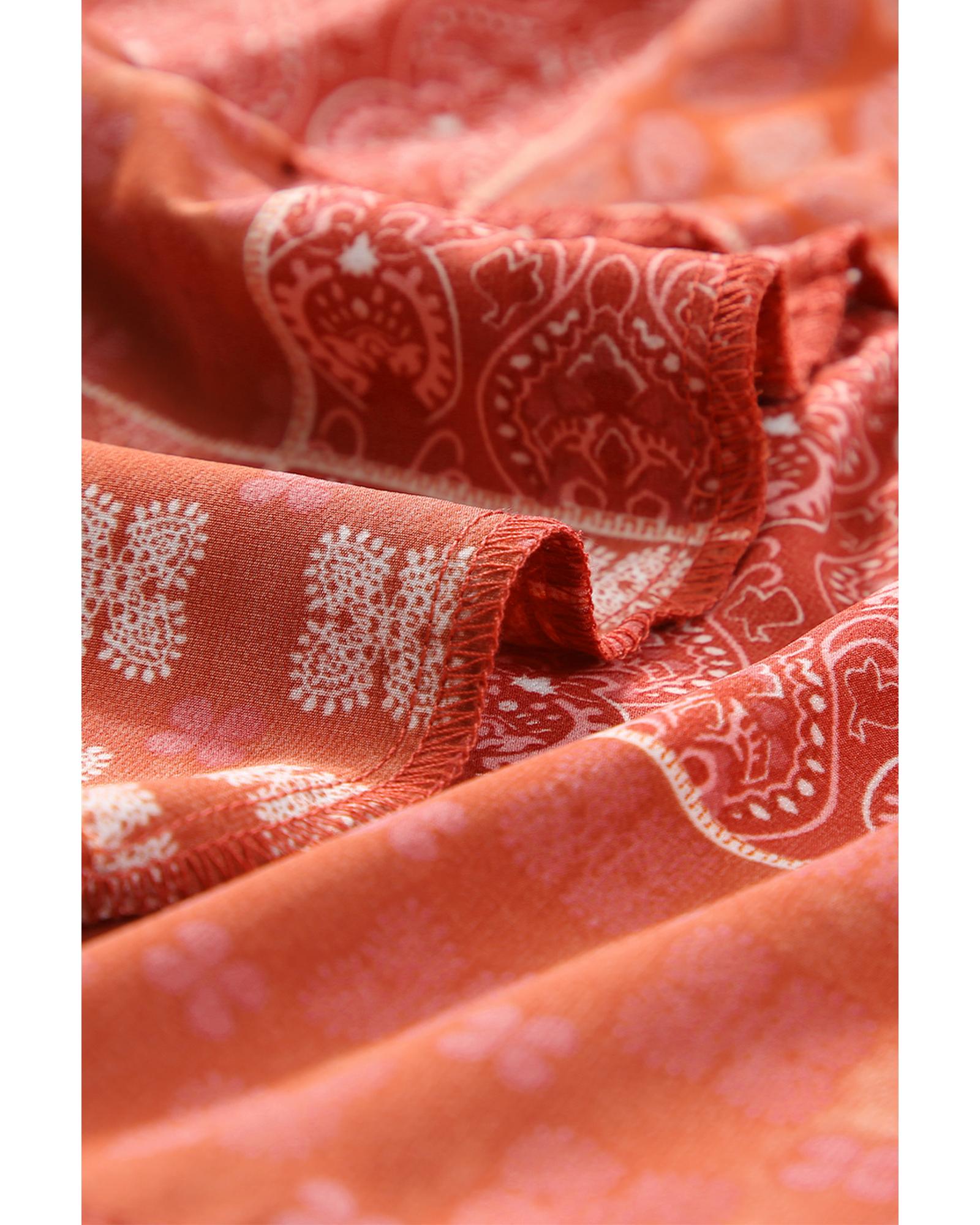 This vibrant red printed long flared skirt features a boho-inspired design with a line silhouette and delicate ruffled details. Made from lightweight and breathable polyester, it is ideal for hot weather or tropical travel. Its versatile style pairs well with both casual and dressy tops, making it a great addition to any wardrobe.